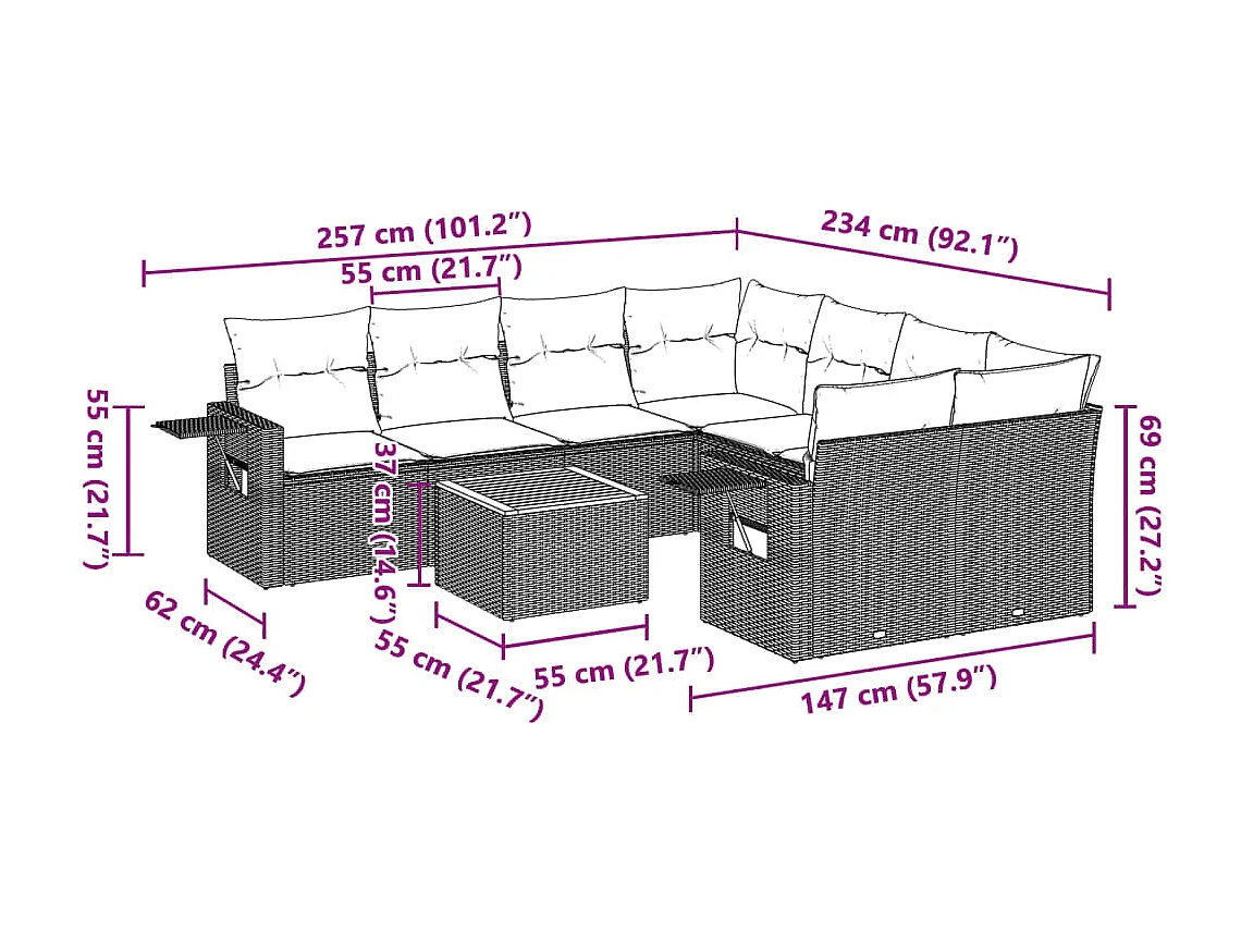 Salon complet de jardin Canapé 2 places et 2 fauteuils