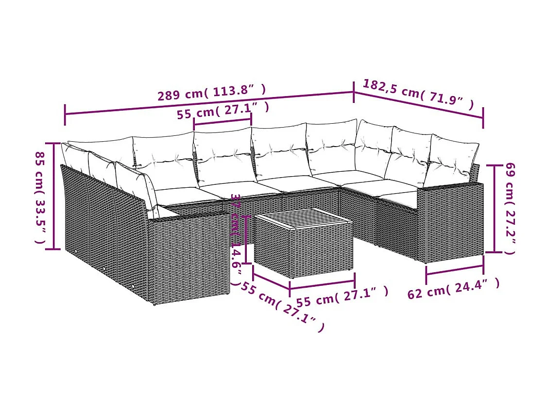 Salon de jardin 10 pcs avec coussins noir résine tressée