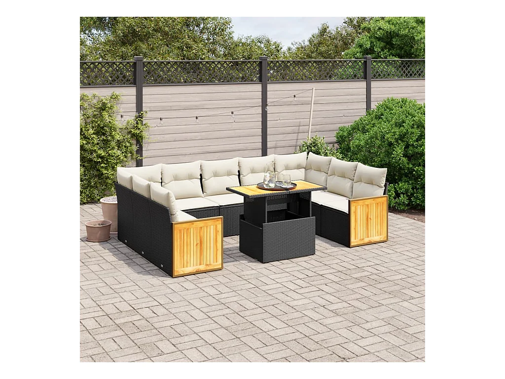 Salon de jardin 10 pcs avec coussins noir résine tressée