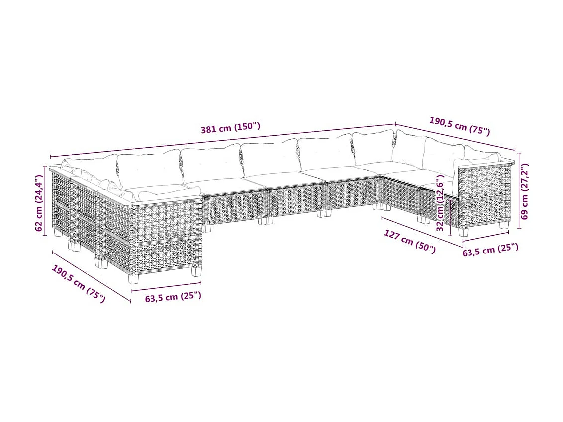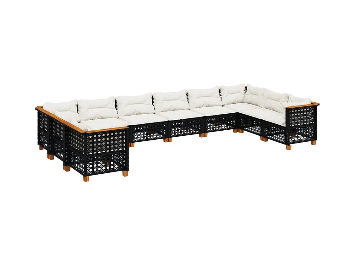 Salon de jardin 10 pcs avec coussins noir résine tressée