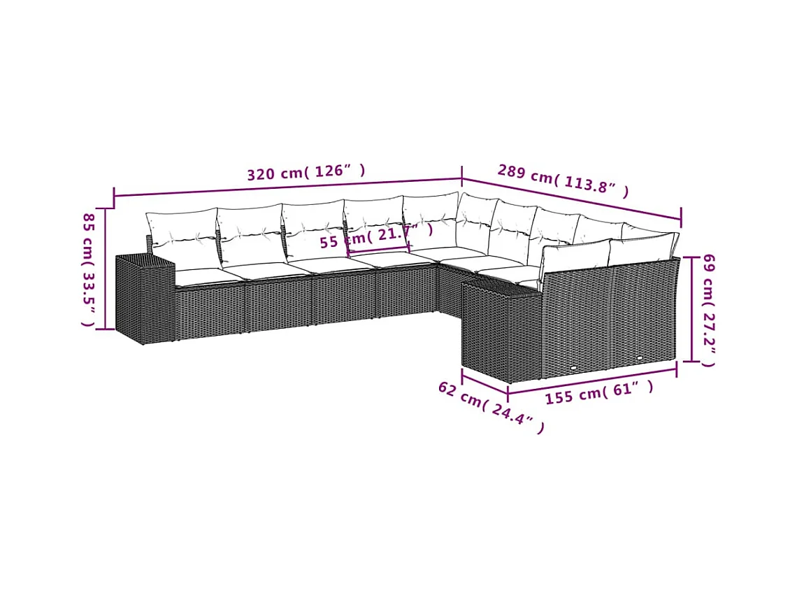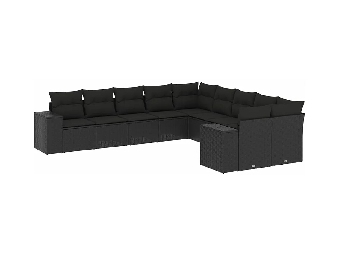 Salon de jardin 10 pcs avec coussins noir résine tressée