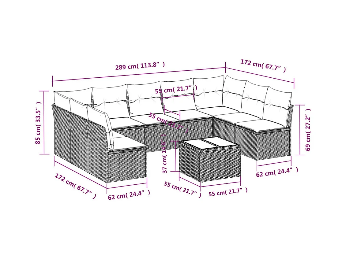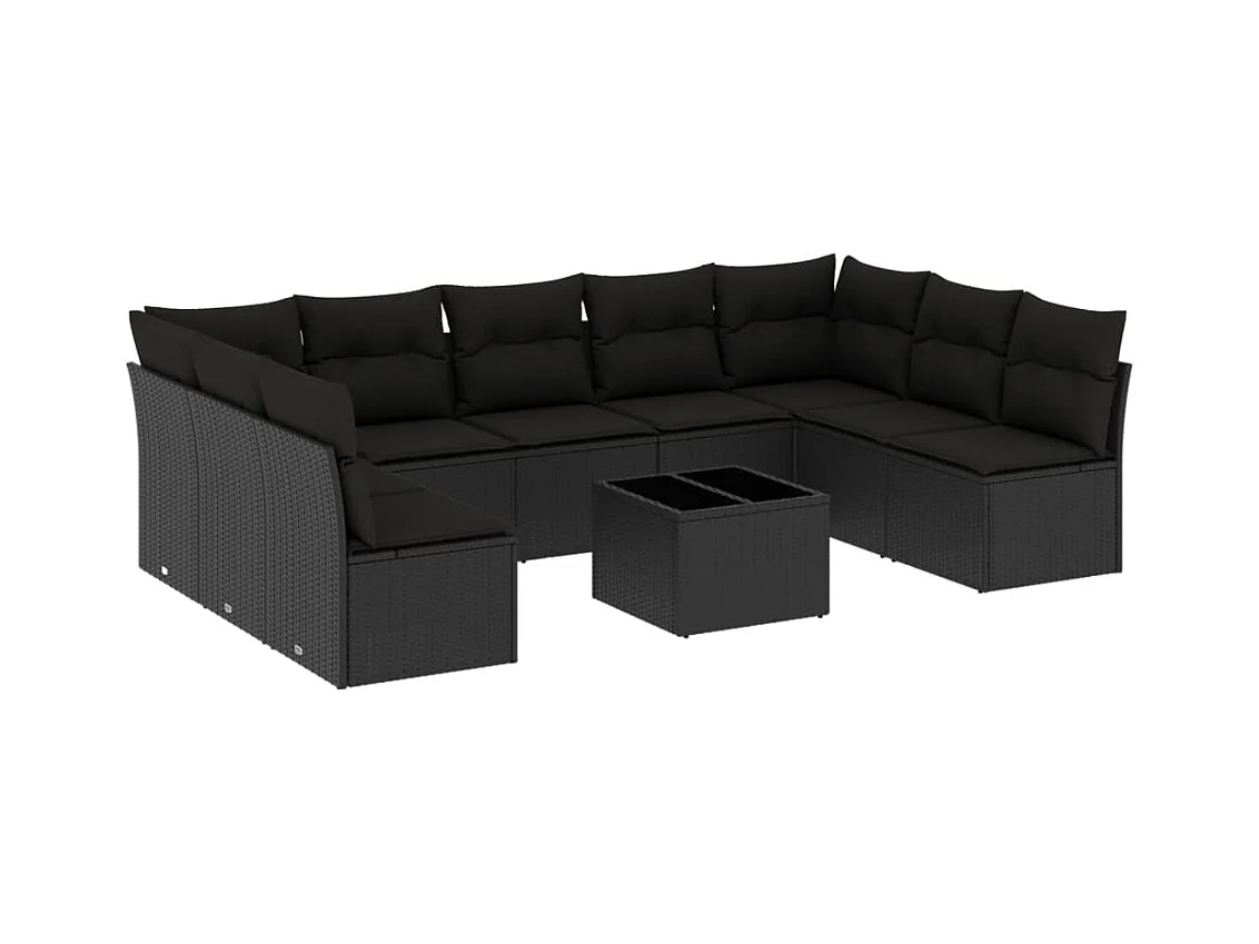 Salon de jardin 10 pcs avec coussins noir résine tressée