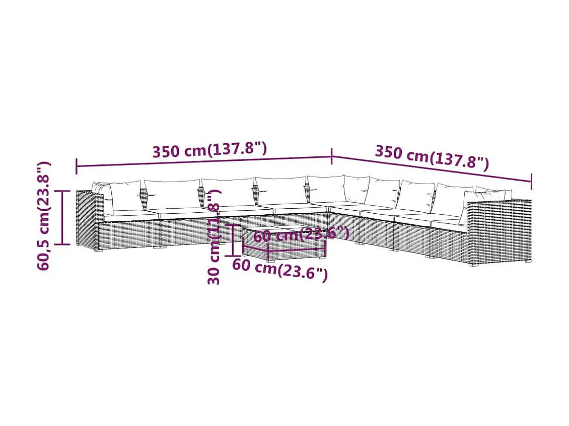 Salon de jardin 10 pcs avec coussins Résine tressée Gris