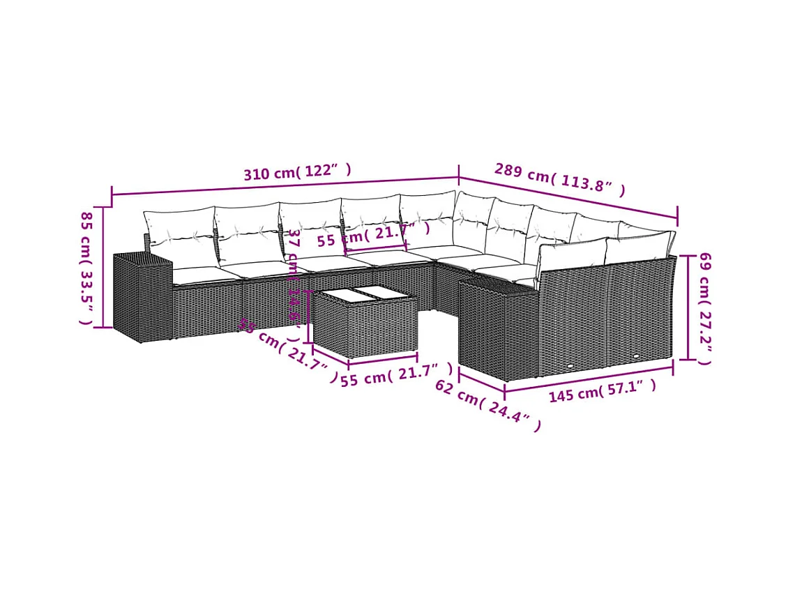 Salon de jardin 11 pcs avec coussins beige résine tressée