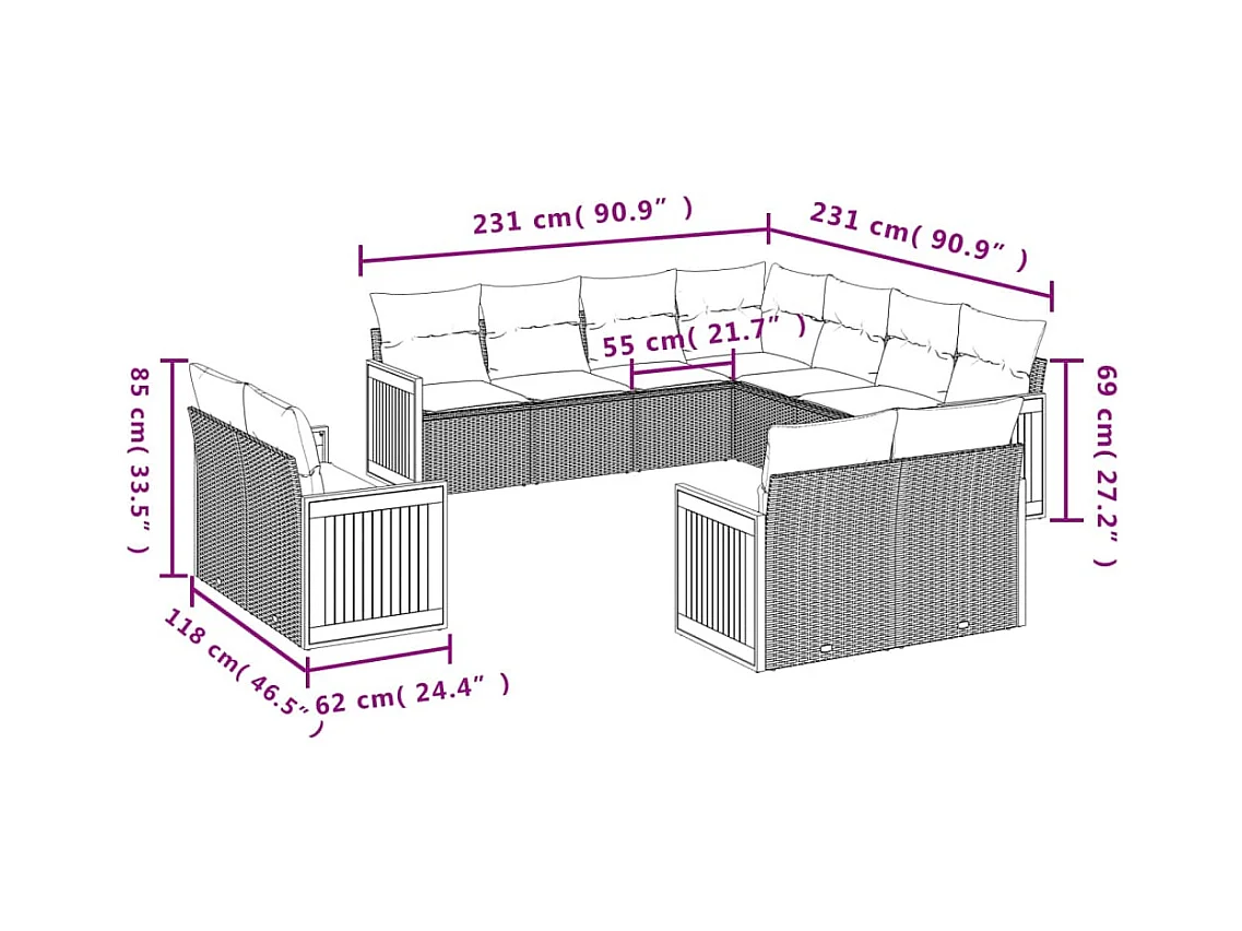 Salon de jardin 11 pcs avec coussins beige résine tressée