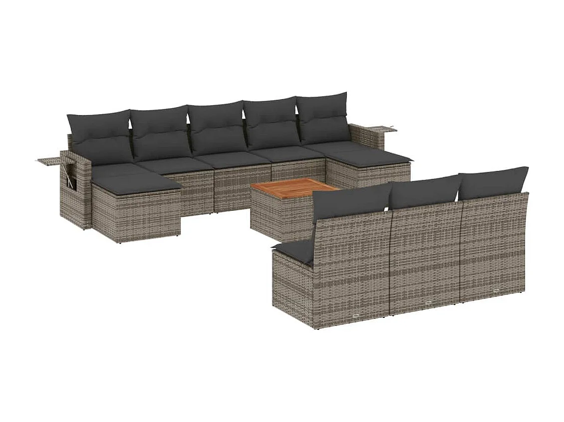 Salon de jardin avec coussins 10 pcs gris résine tressée
