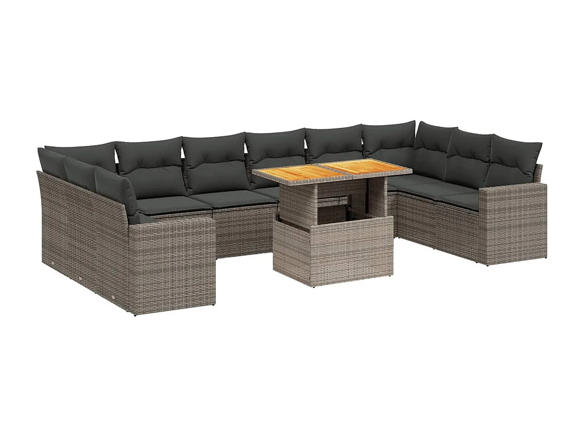 Salon de jardin 11 pcs avec coussins gris résine tressée