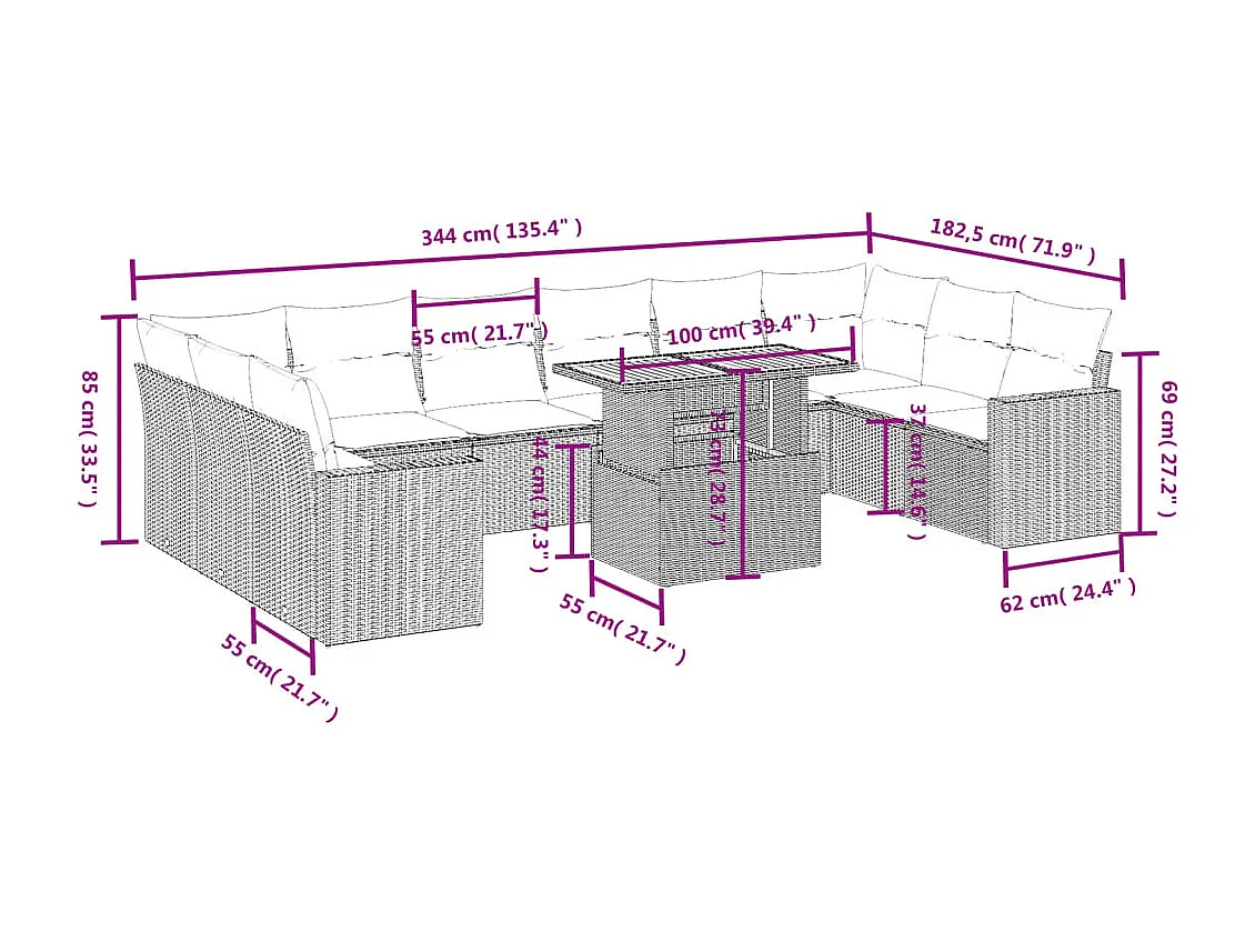 Salon complet de jardin Canapé 2 places et 2 fauteuils
