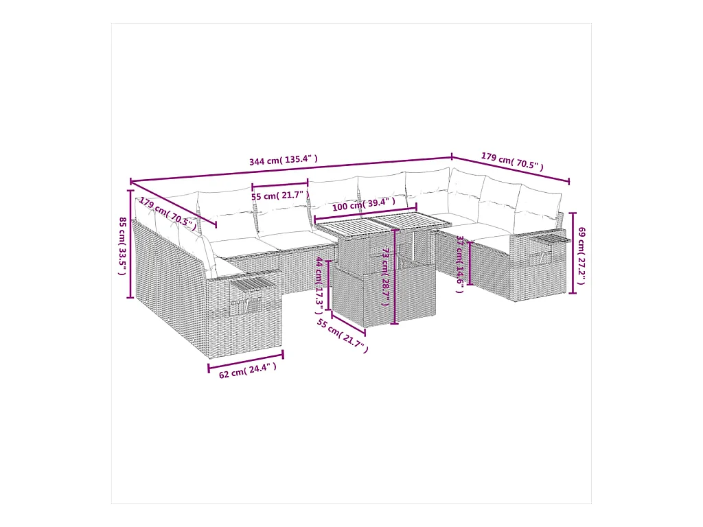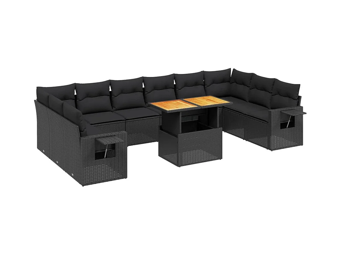 Salon de jardin 10 pcs avec coussins noir résine tressée