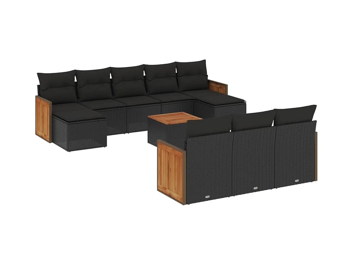 Salon de jardin 10 pcs avec coussins noir résine tressée