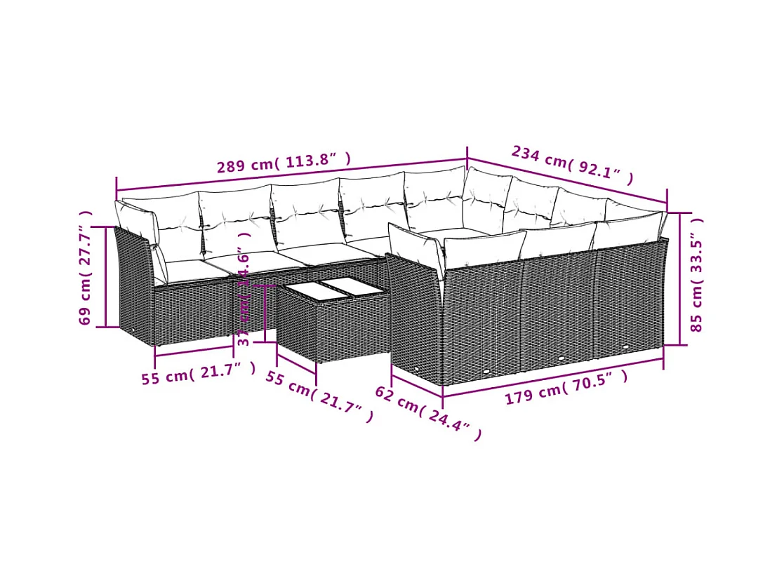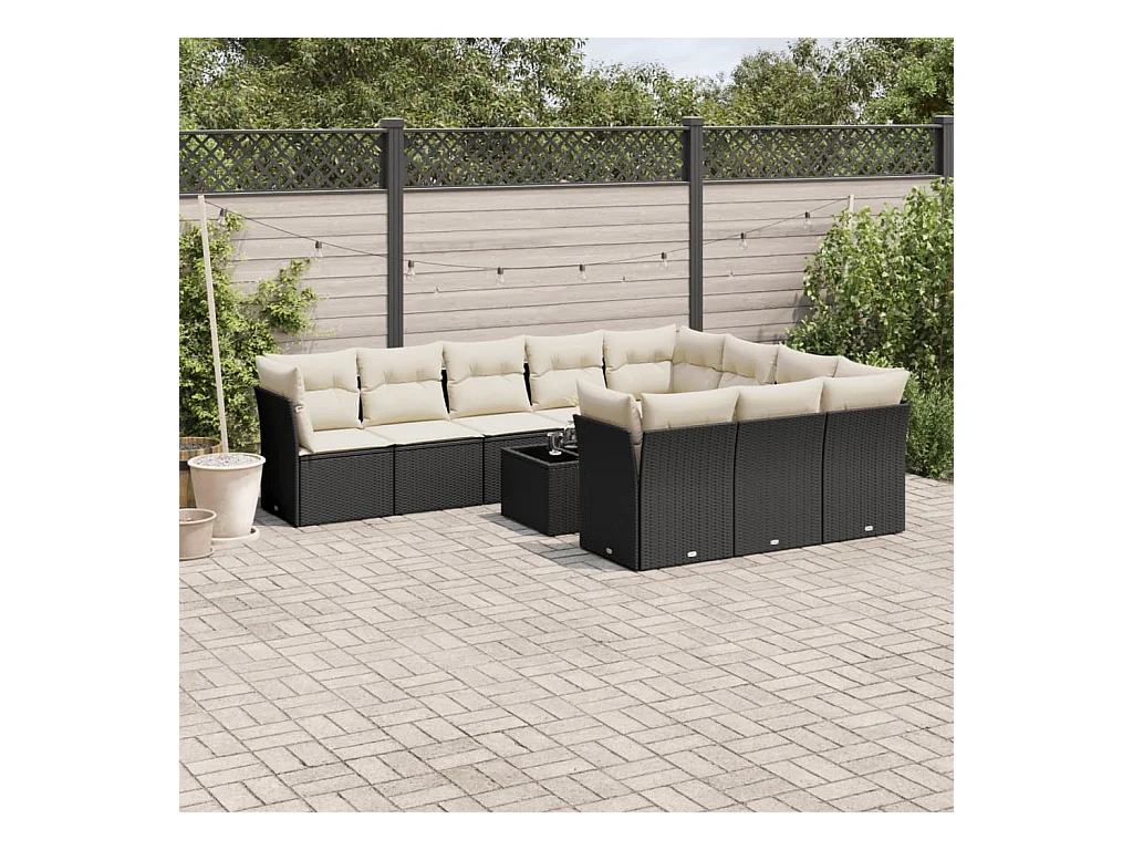 Salon de jardin 10 pcs avec coussins noir résine tressée