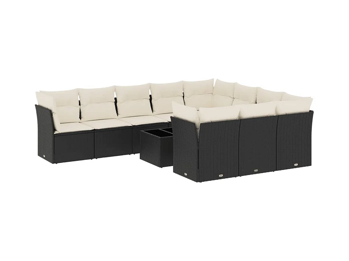 Salon de jardin 11 pcs avec coussins noir résine tressée