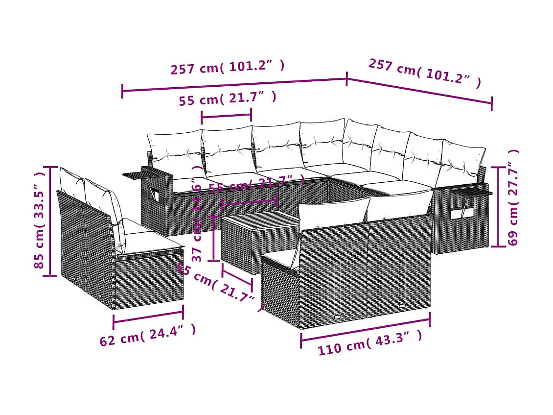 Salon de jardin 12 pcs avec coussins noir résine tressée