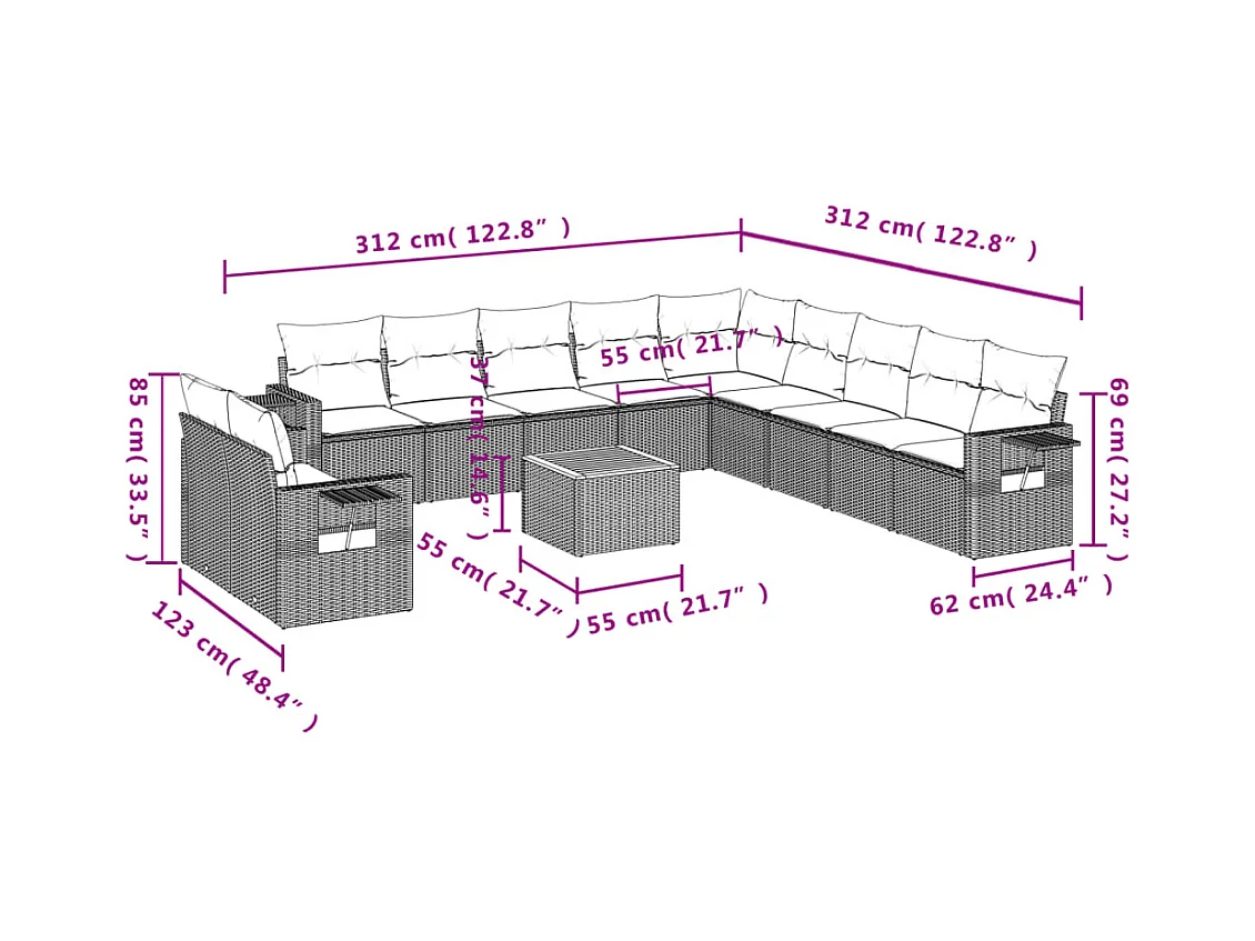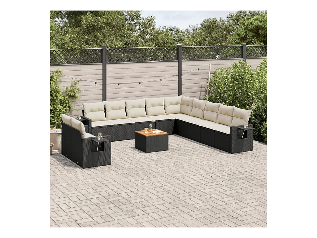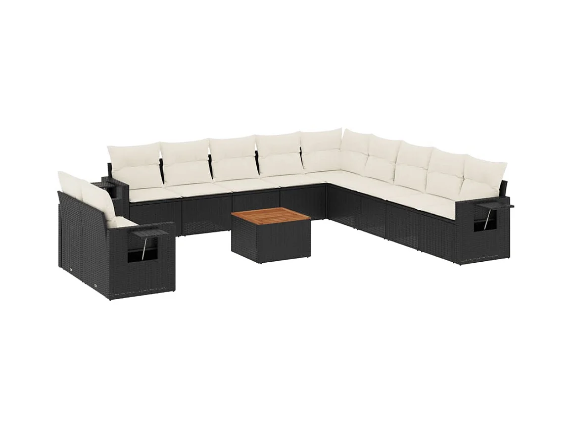 Salon de jardin 12 pcs avec coussins noir résine tressée