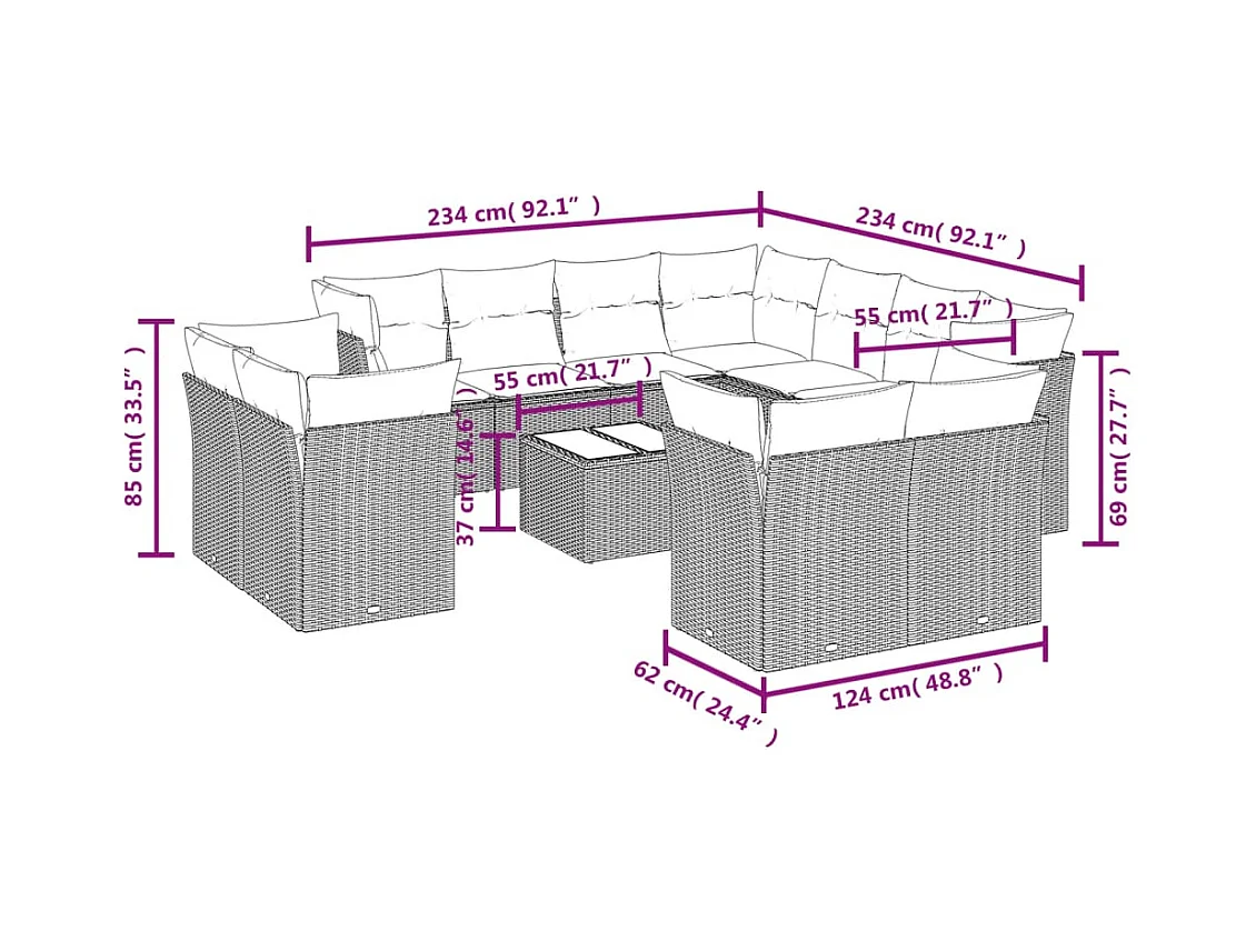 Salon de jardin 10 pcs avec coussins noir résine tressée