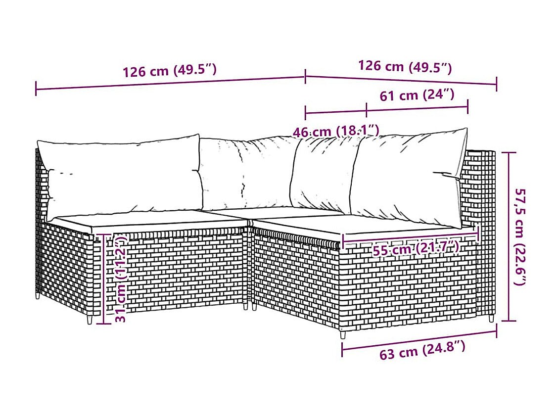 Salon de jardin 3 pcs avec coussins marron résine tressée