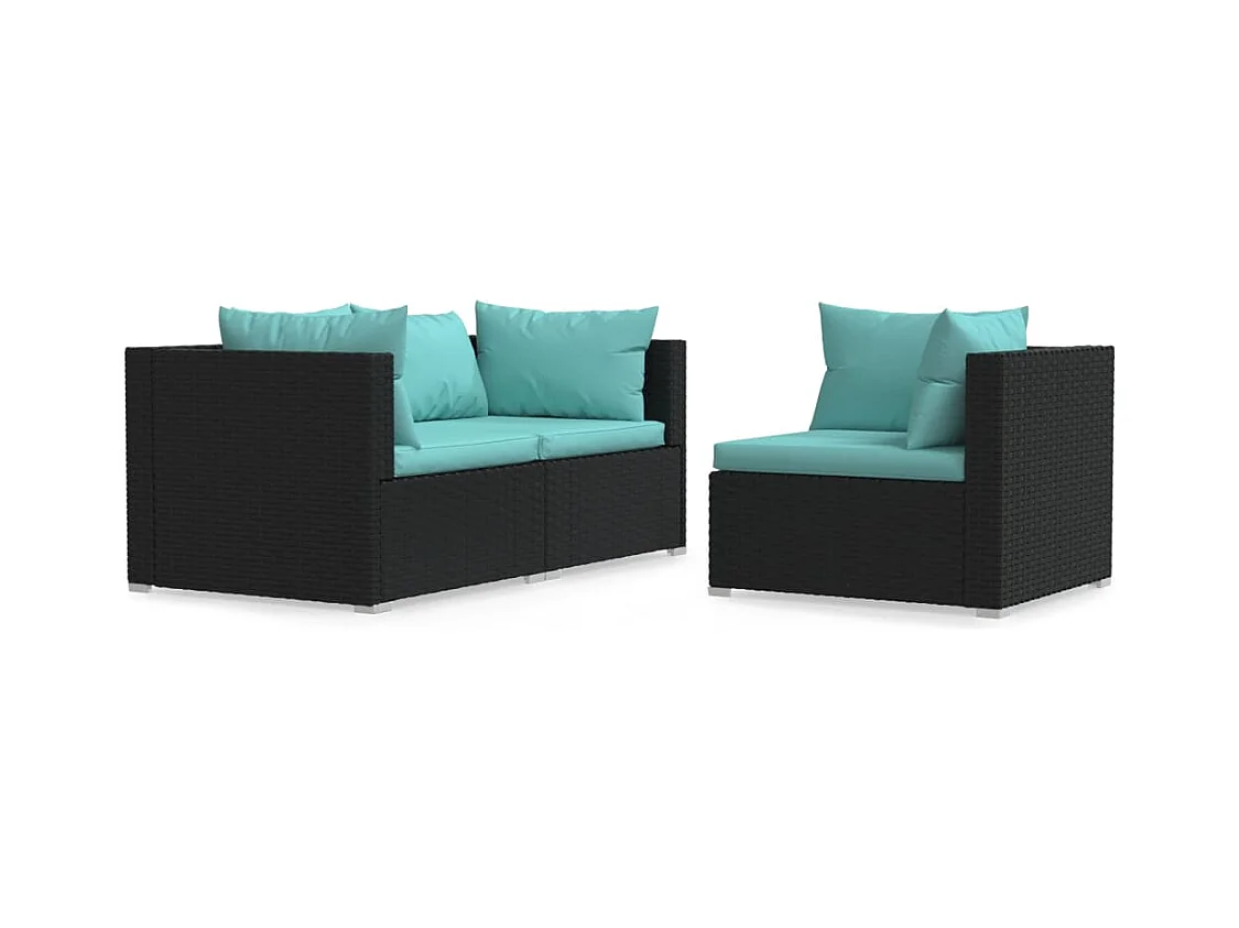 Salon de jardin 3 pcs avec coussins Noir Résine tressée