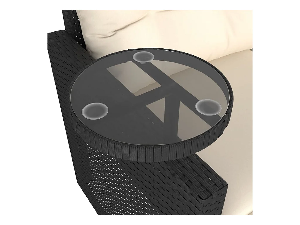 Salon de jardin d'angle 3 pcs avec coussins noir résine tressée