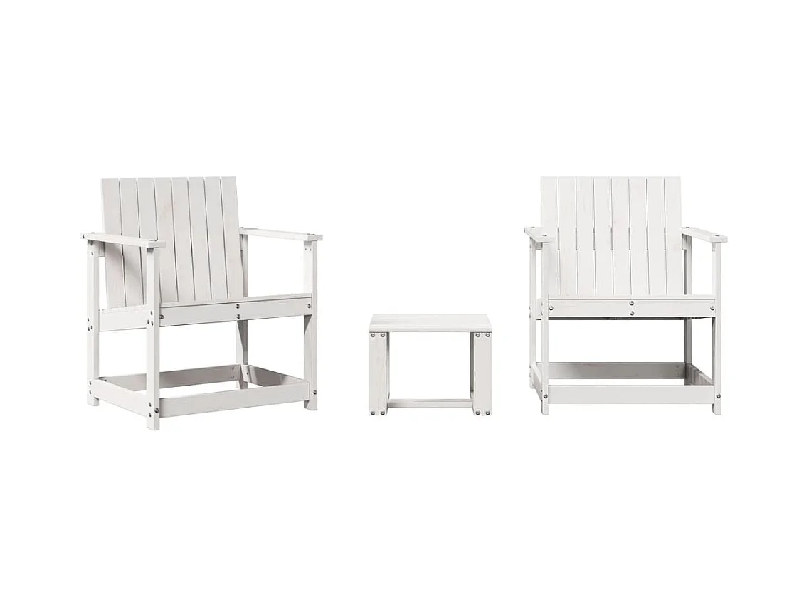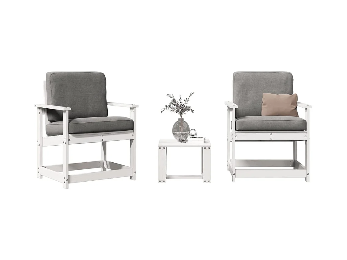 Salon de jardin 3 pcs blanc bois massif de pin