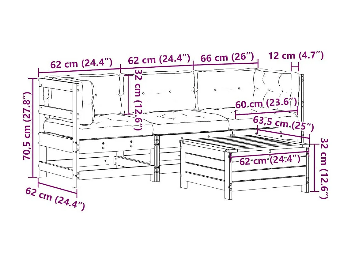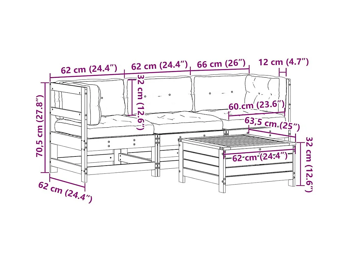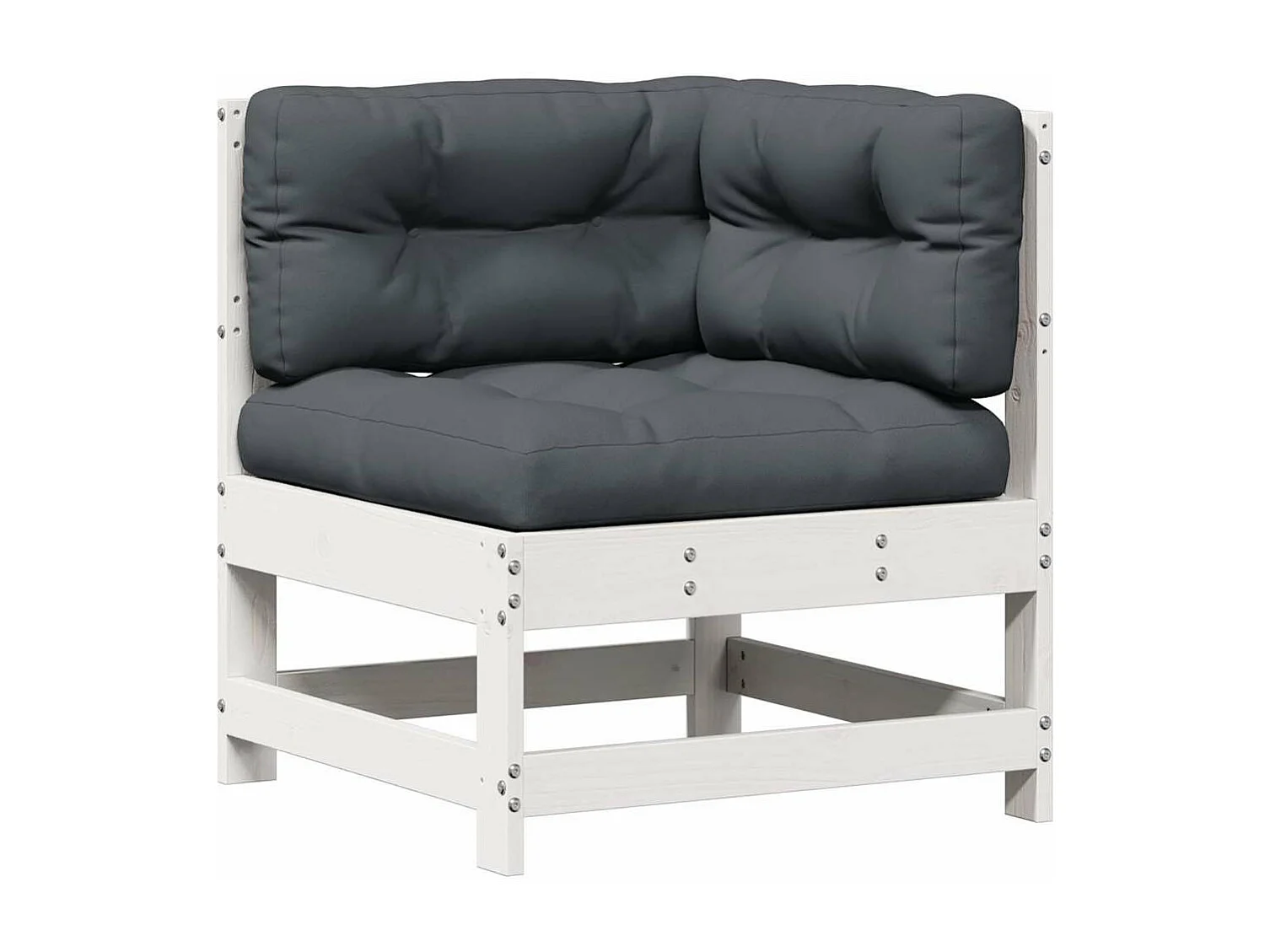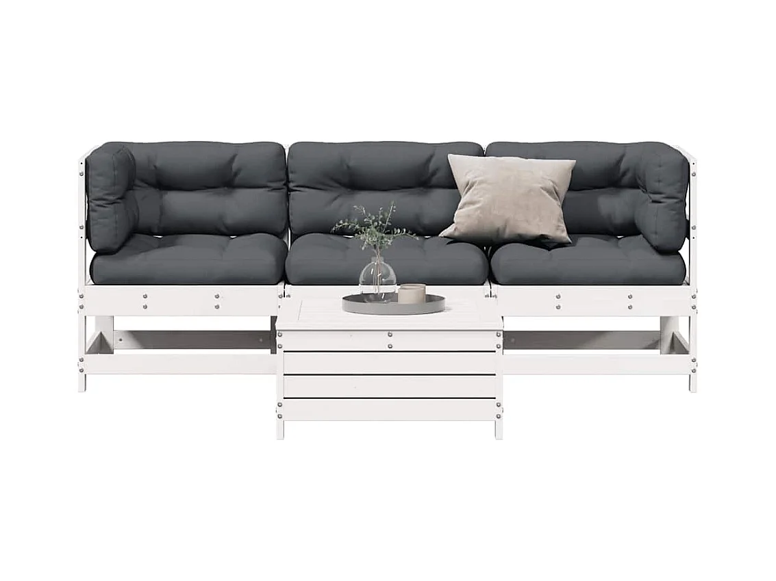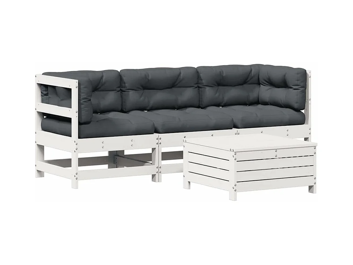 Salon de jardin 4 pcs avec coussins blanc bois de pin massif