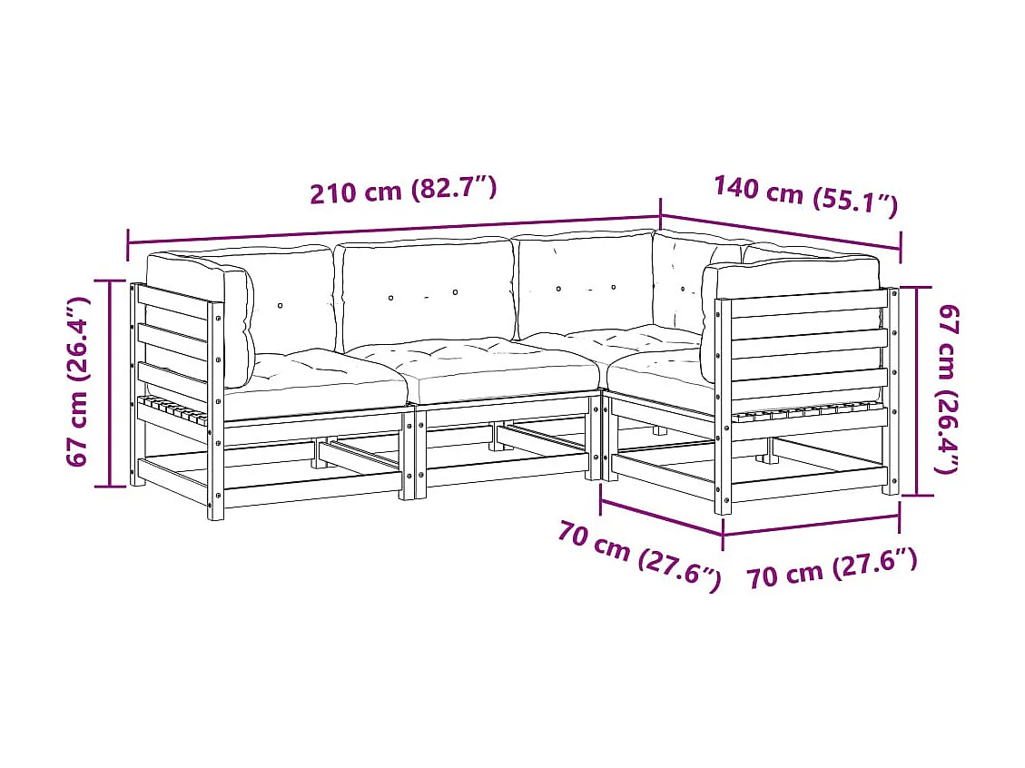 Salon de jardin 4 pcs avec coussins cire marron bois pin massif
