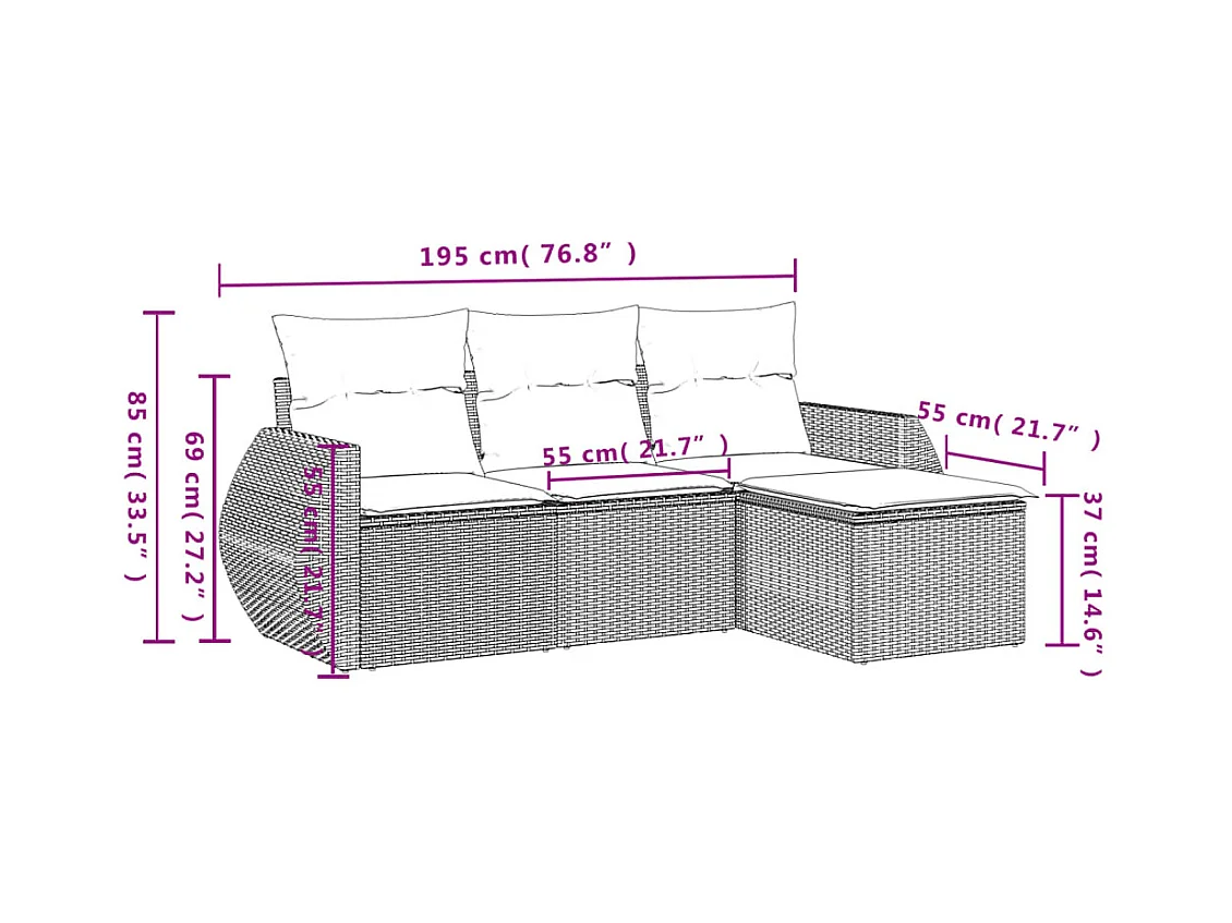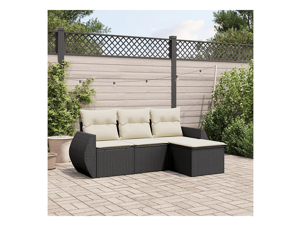 Salon de jardin 4 pcs avec coussins noir résine tressée