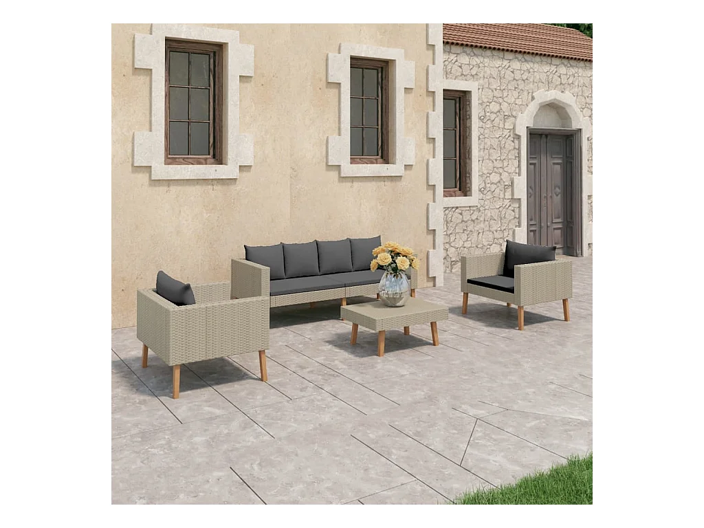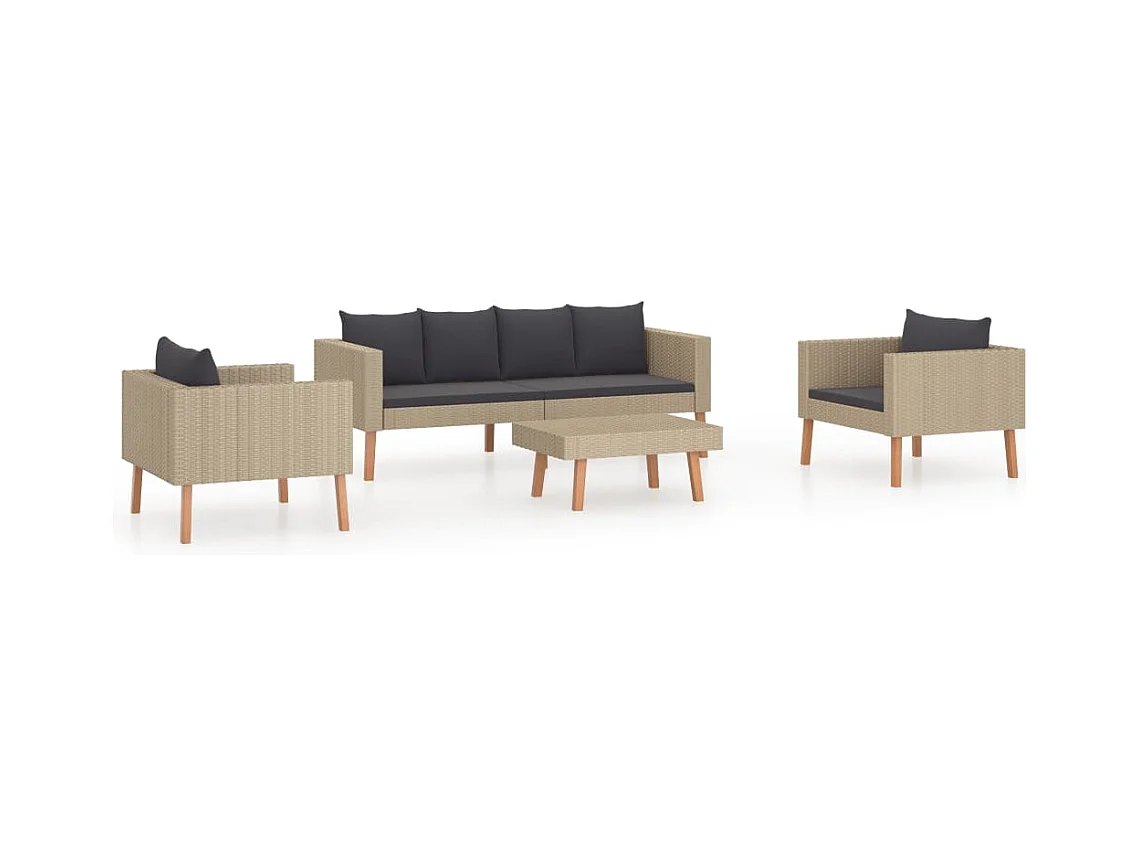 Salon de jardin 4 pcs avec coussins Résine tressée Beige