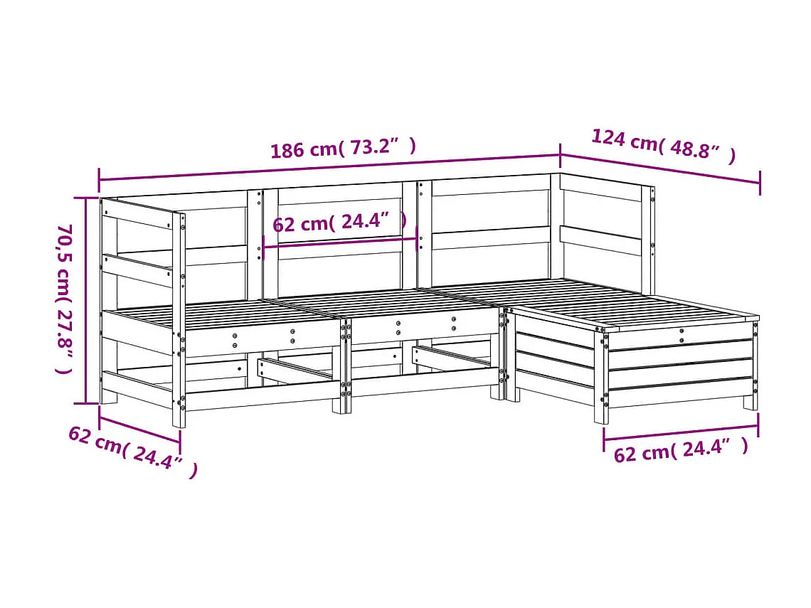 Salon de jardin 4 pcs bois massif de pin