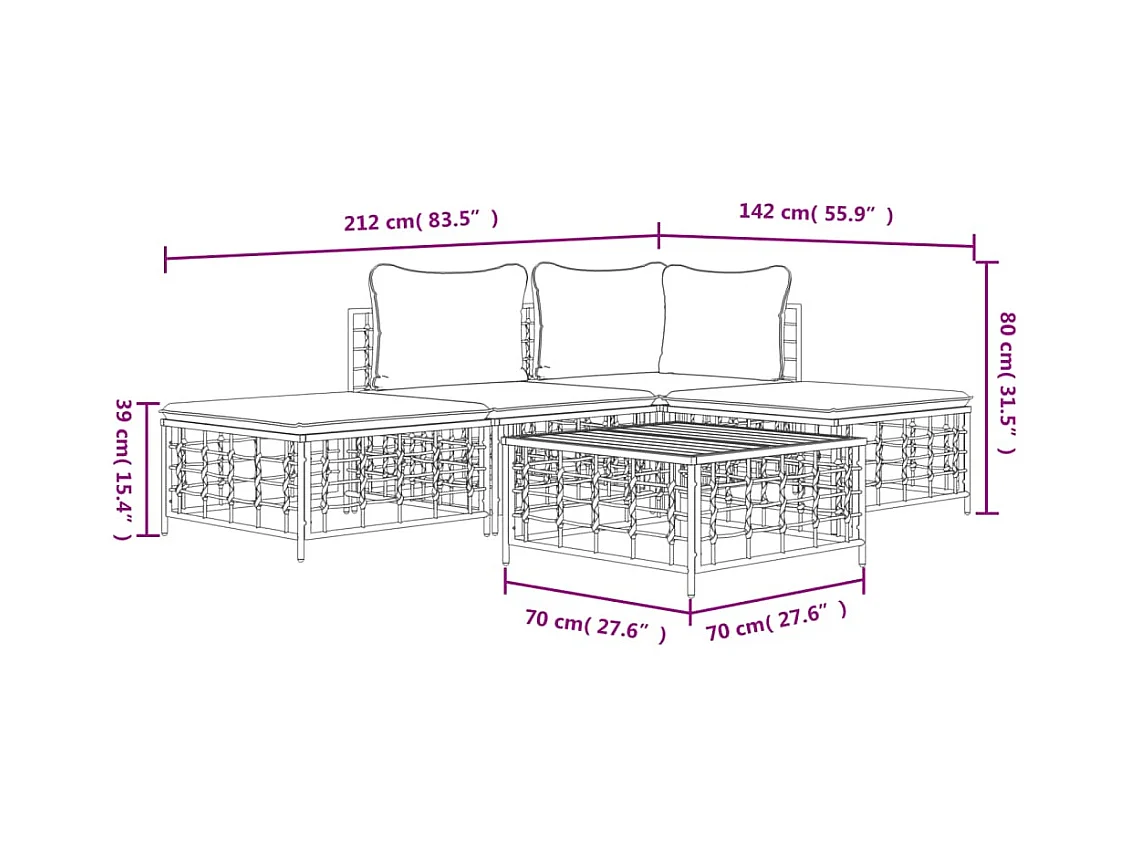 Salon de jardin 5 pcs avec coussins anthracite résine tressée