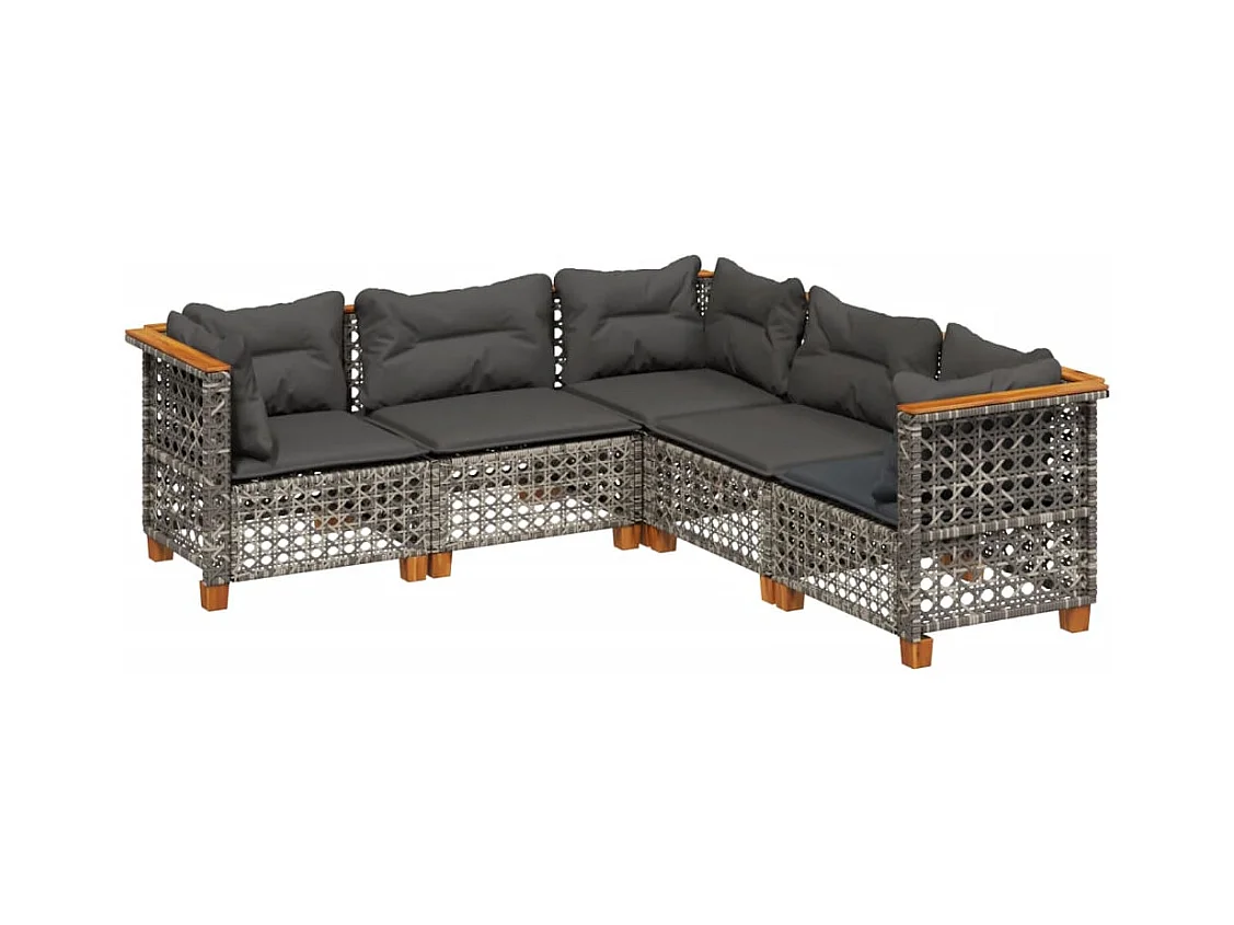 Salon de jardin 5 pcs avec coussins gris résine tressée