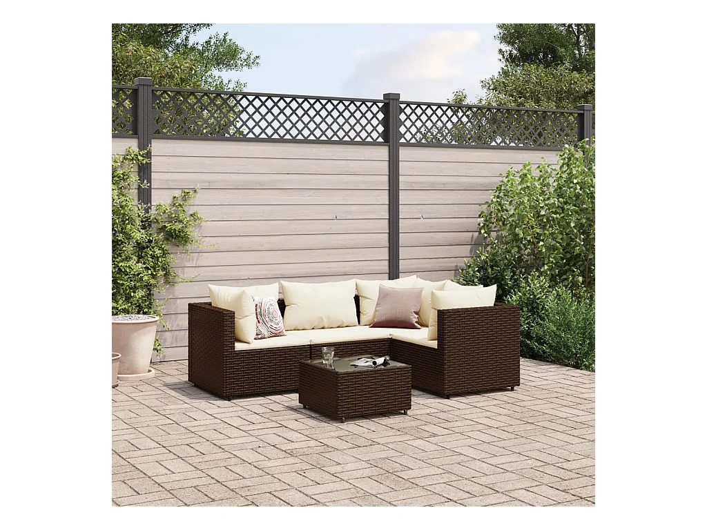 Salon de jardin 5 pcs avec coussins Marron Résine tressée