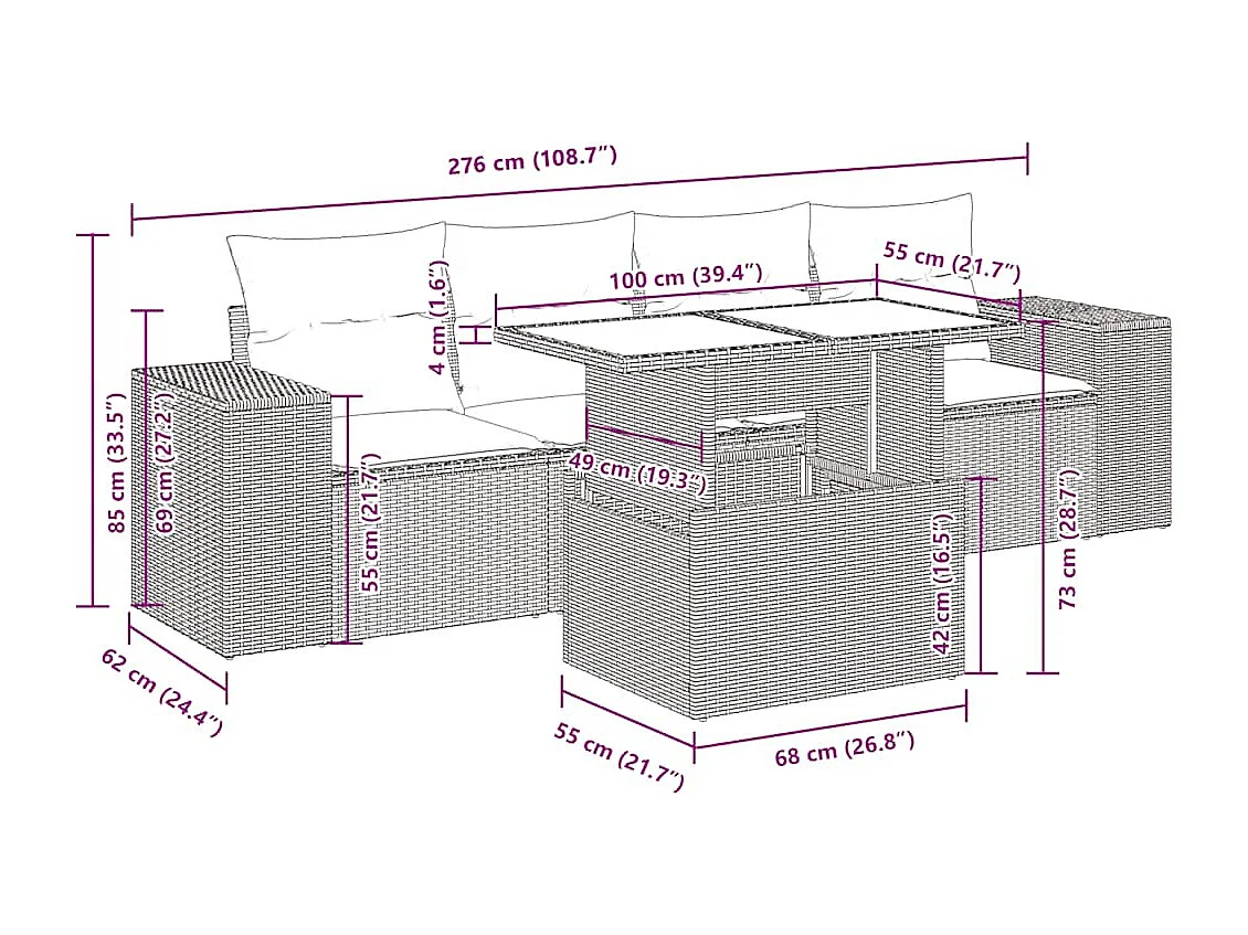 Salon complet de jardin Canapé 2 places et 2 fauteuils