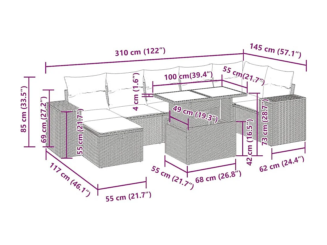Salon complet de jardin Canapé 2 places et 2 fauteuils