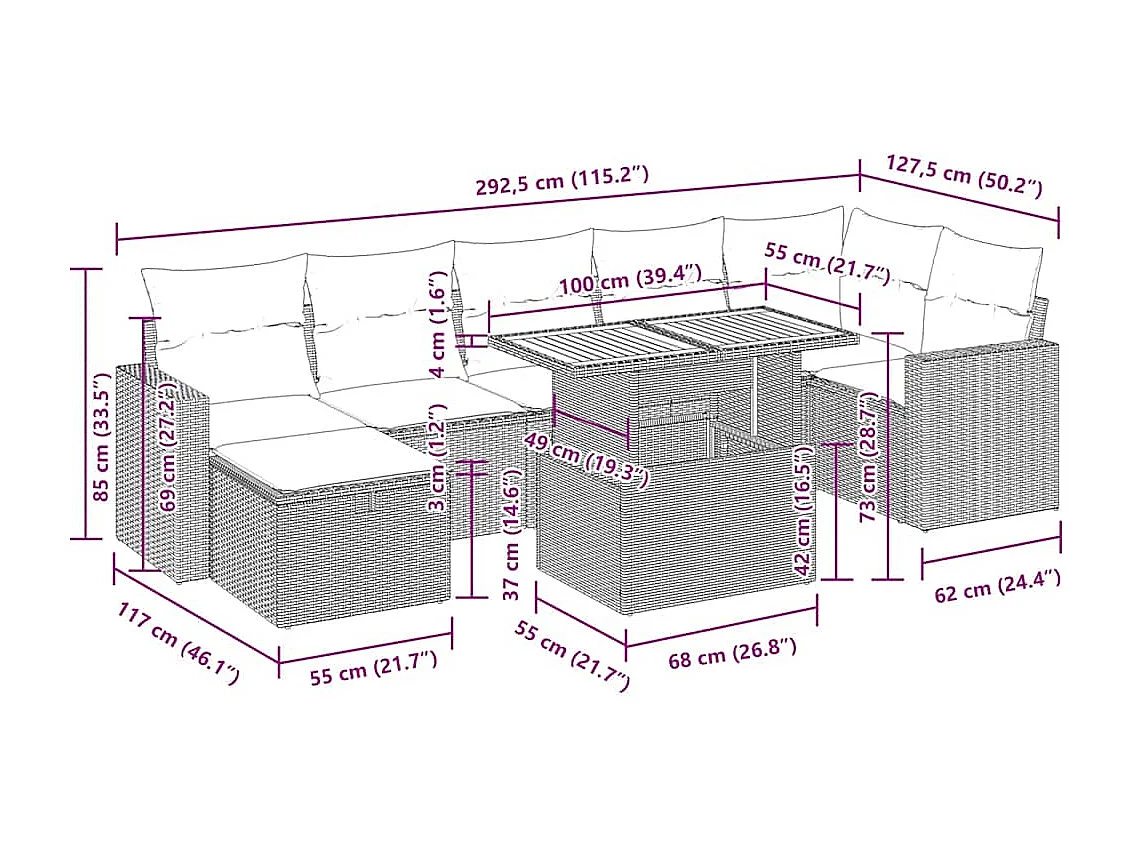 Salon complet de jardin Canapé 2 places et 2 fauteuils