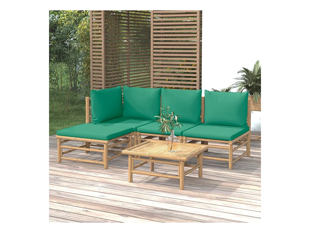 Salon de jardin 5 pcs avec coussins vert bois massif