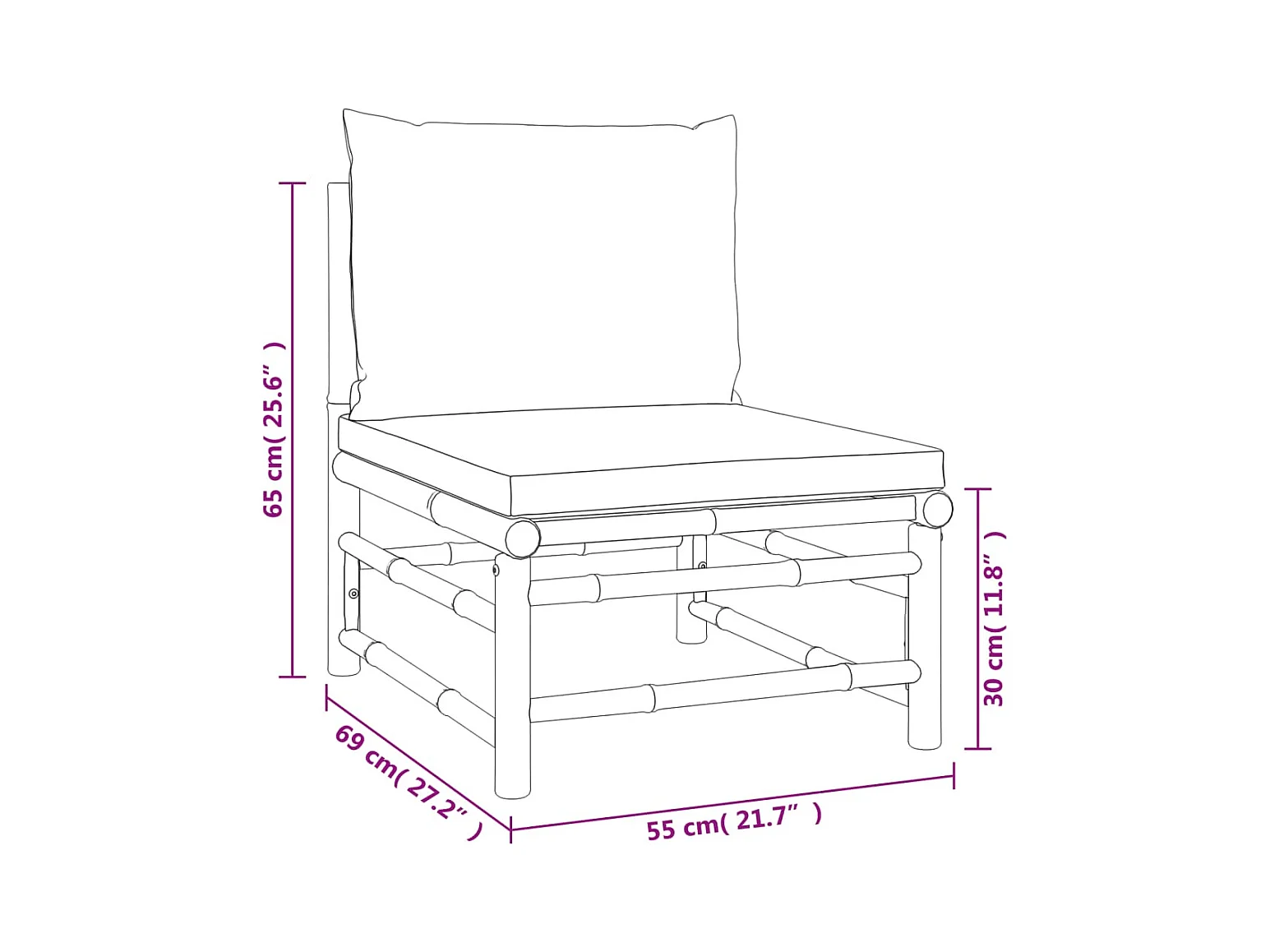 Salon de jardin 4 pcs avec coussins blanc crème bambou