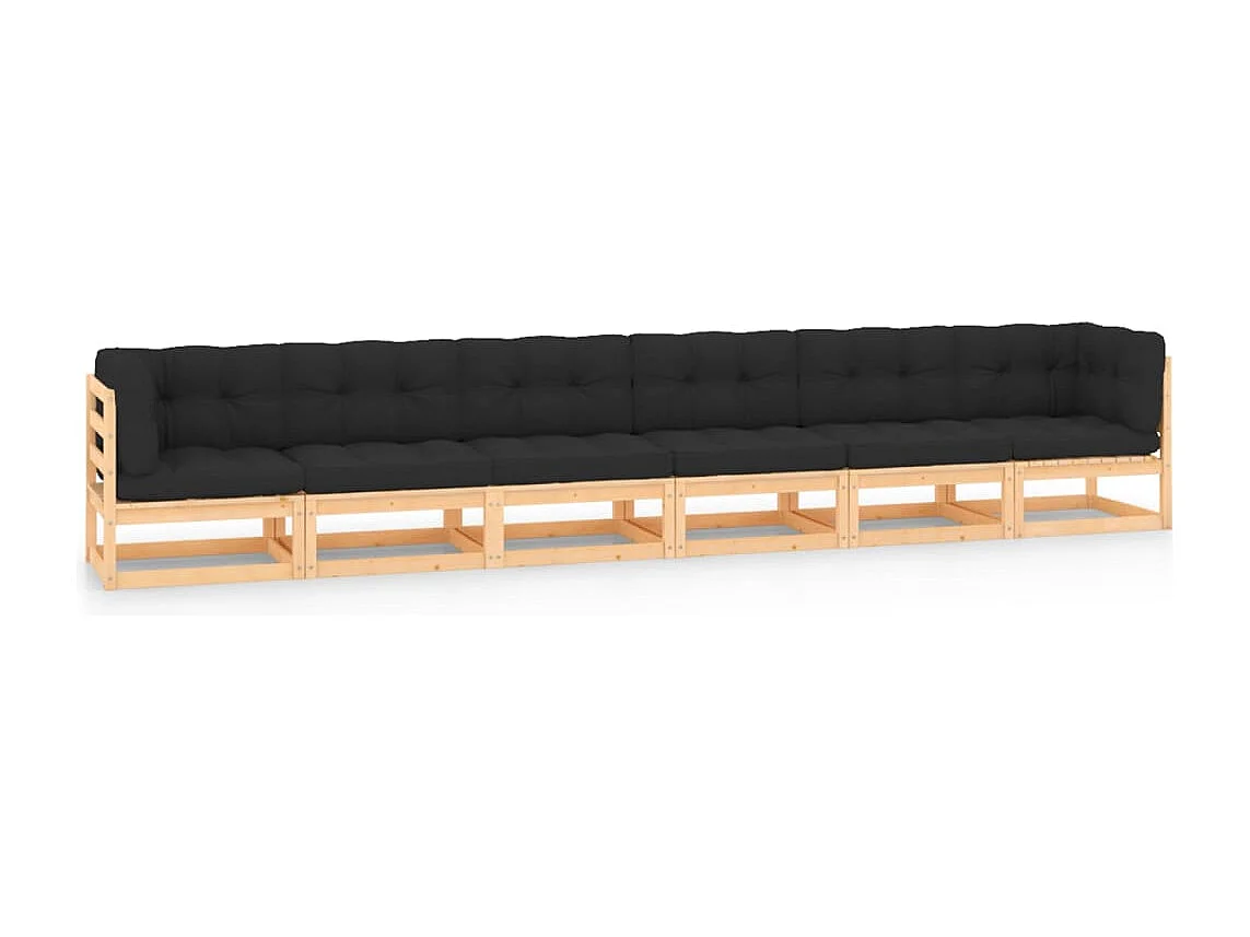 Salon de jardin 6 pcs avec coussins anthracite Pin massif