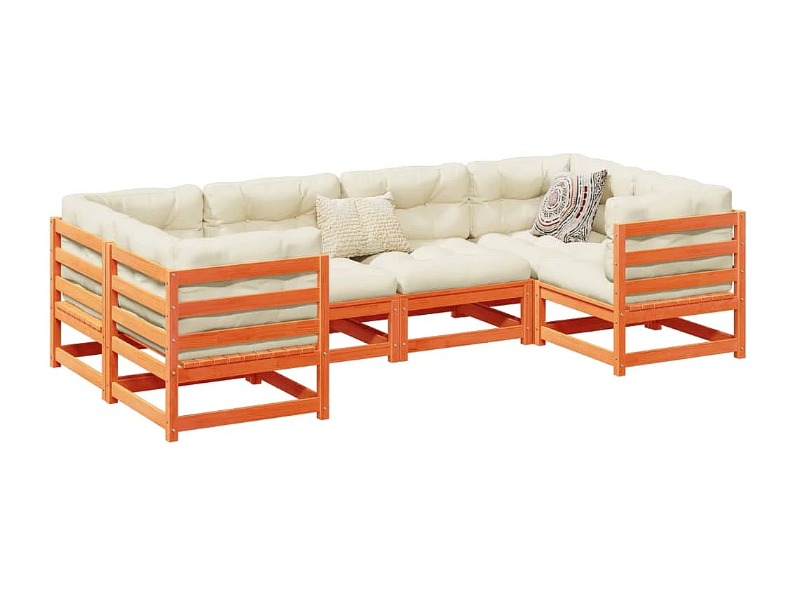 Salon de jardin 6 pcs avec coussins cire marron bois pin massif