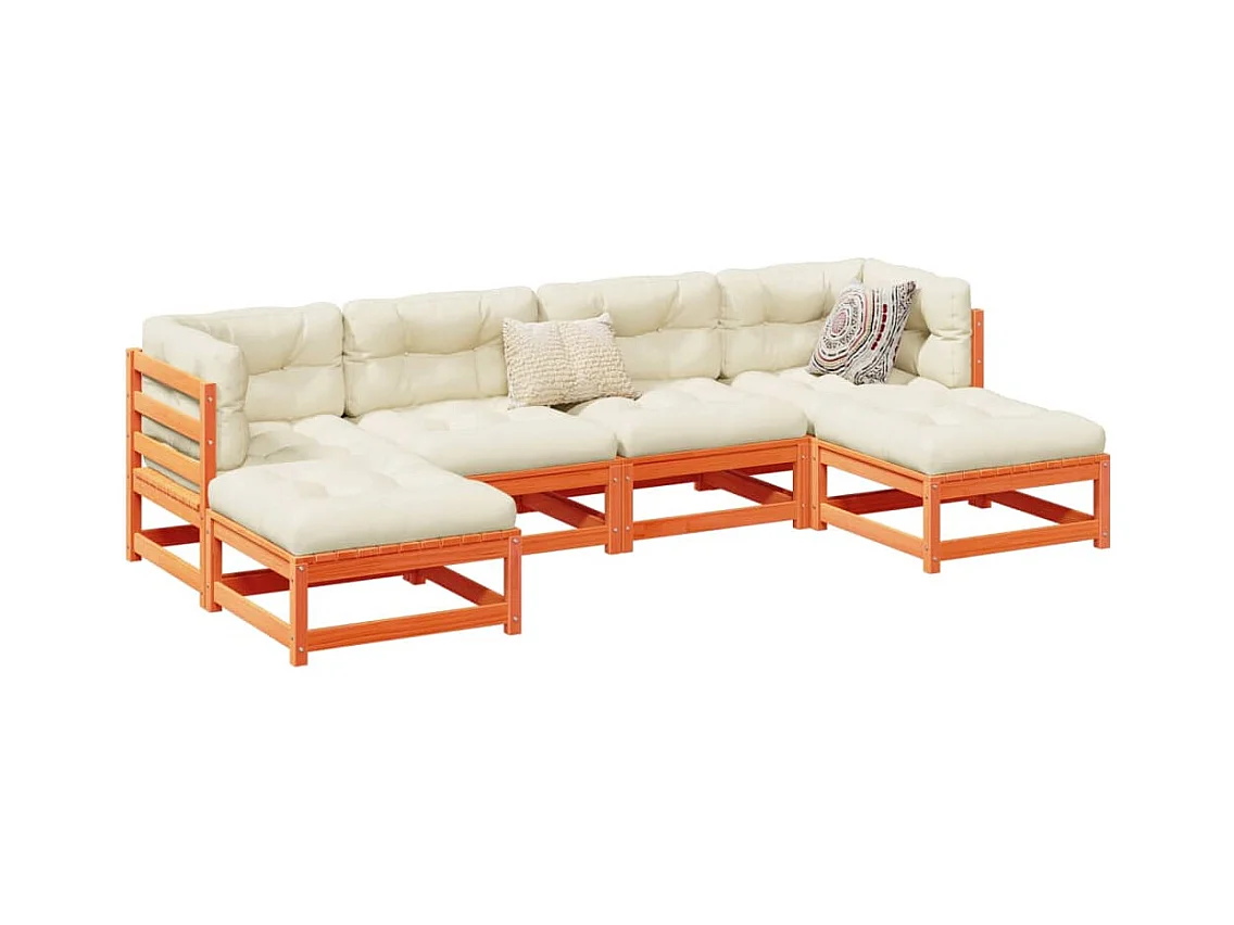 Salon de jardin 6 pcs avec coussins cire marron bois pin massif