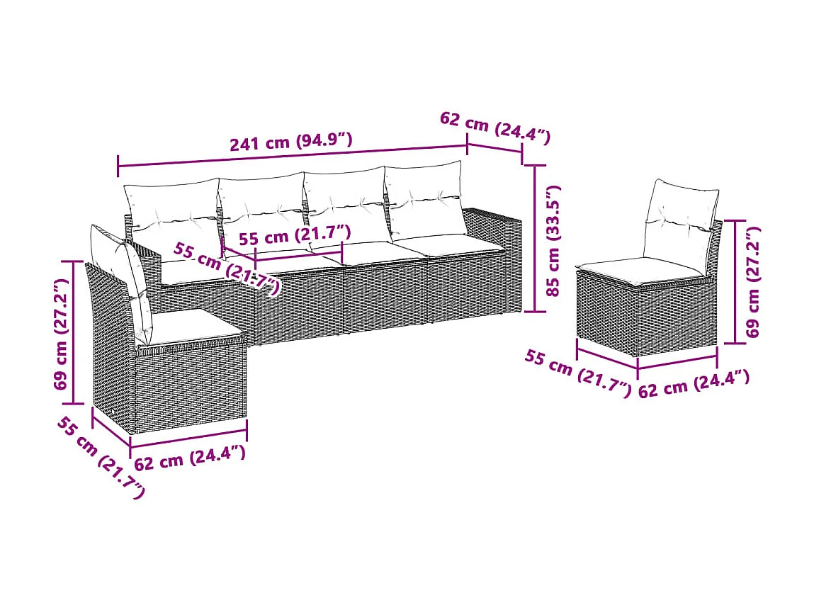 Salon complet de jardin Canapé 2 places et 2 fauteuils