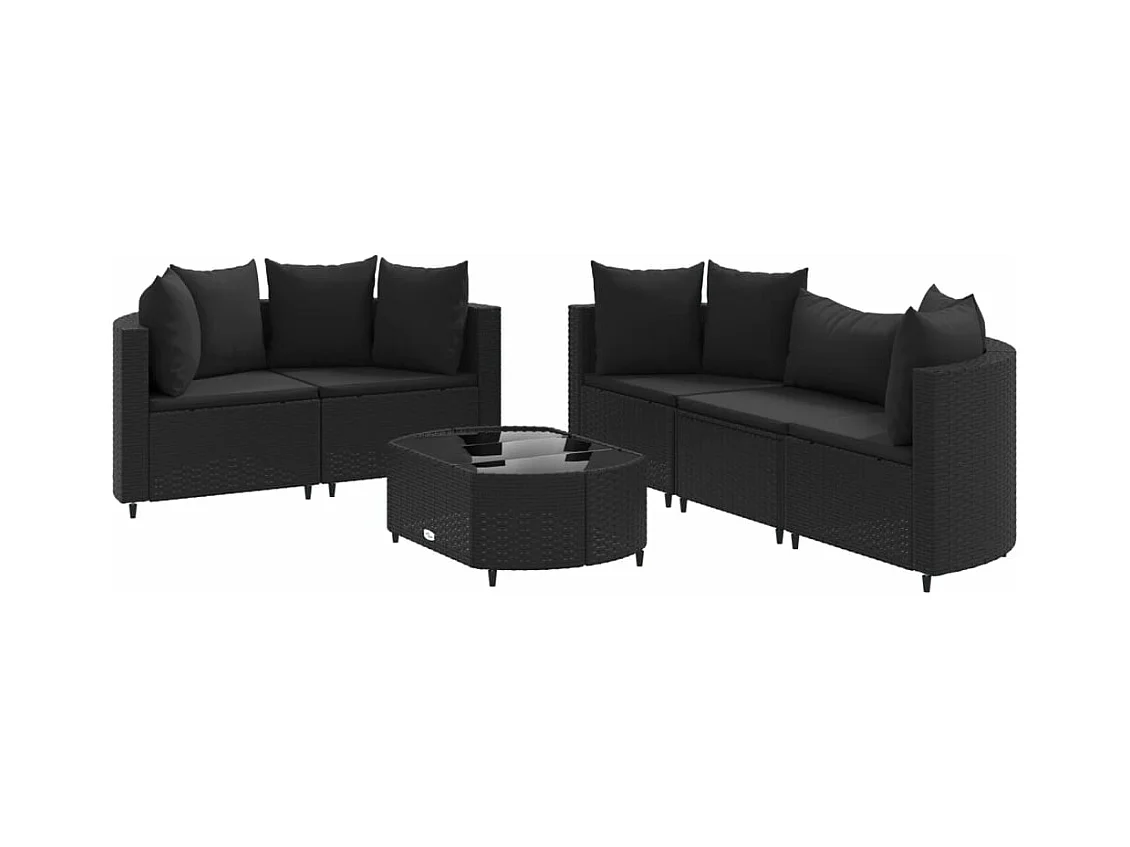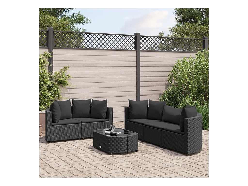 Salon de jardin 6 pcs avec coussins noir résine tressée