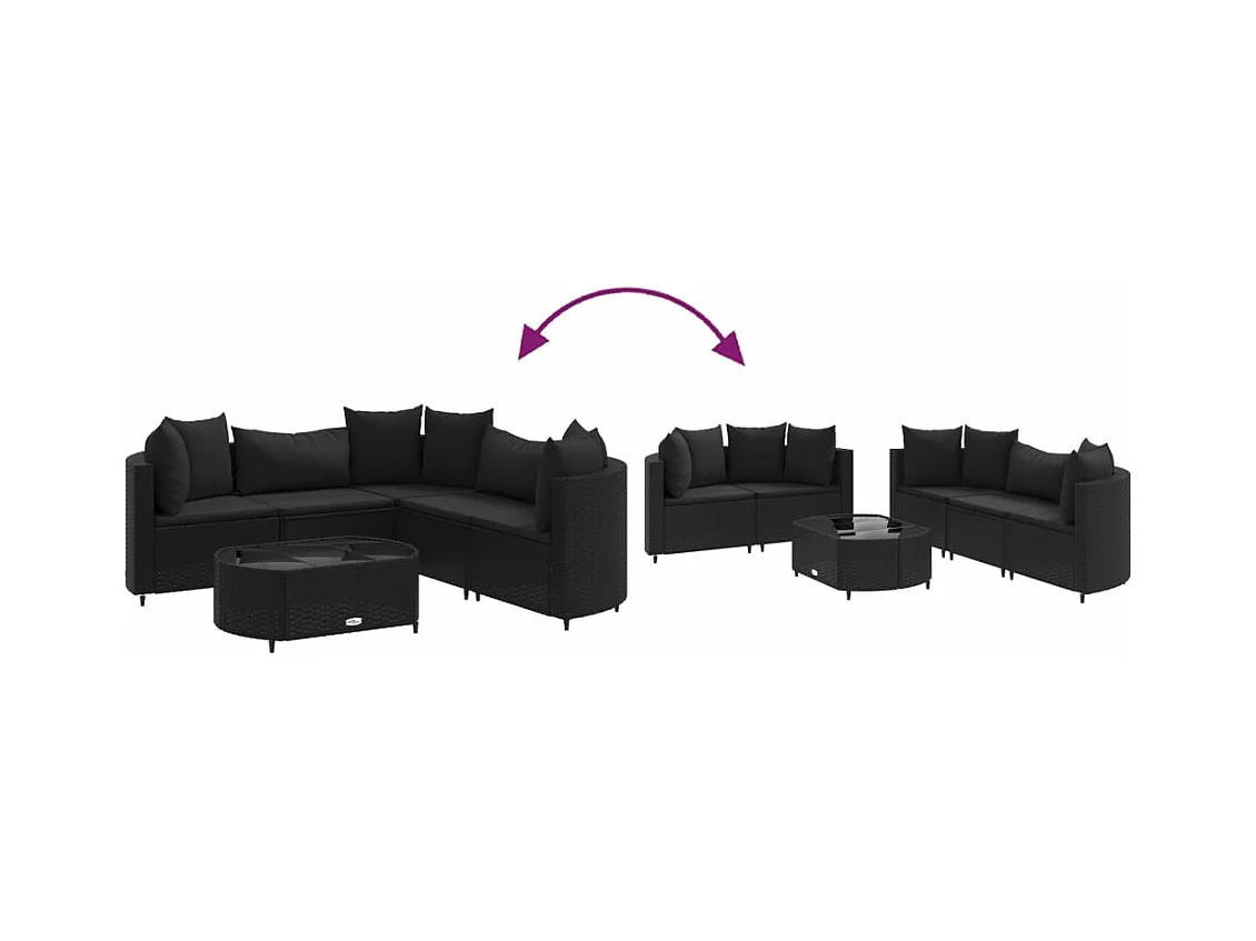 Salon de jardin 8 pcs avec coussins noir résine tressée