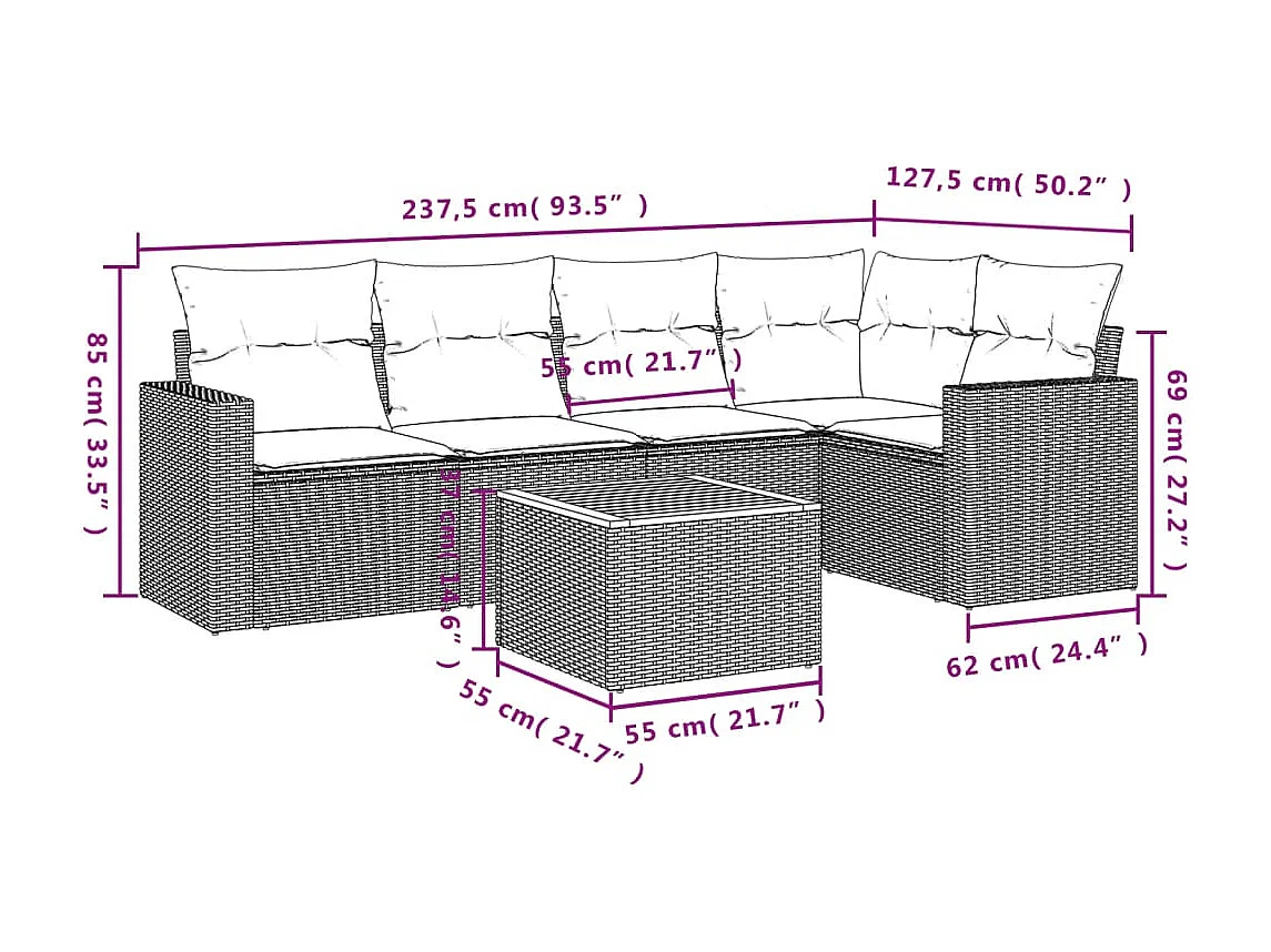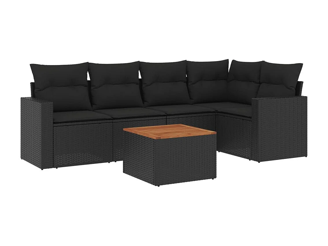 Salon de jardin 6 pcs avec coussins noir résine tressée
