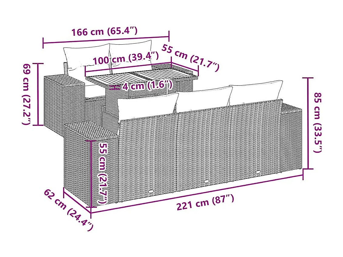 Salon complet de jardin Canapé 2 places et 2 fauteuils