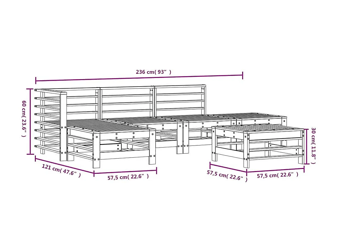 Salon de jardin 6 pcs Bois de pin massif