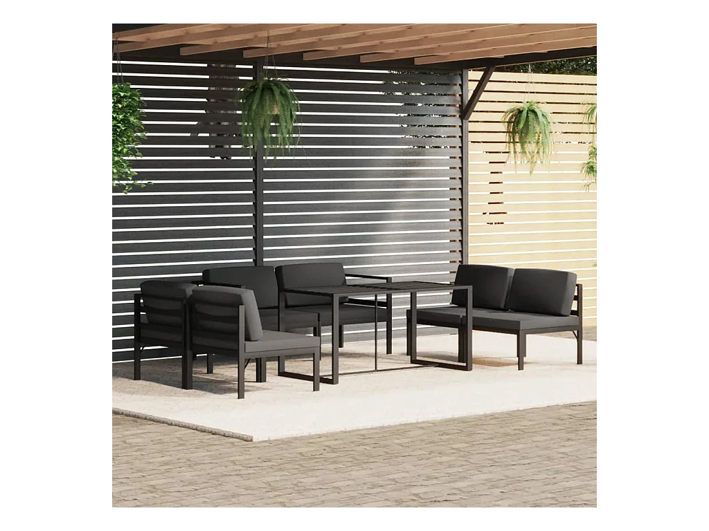 Salon de jardin 6 pcs avec coussins Aluminium Anthracite