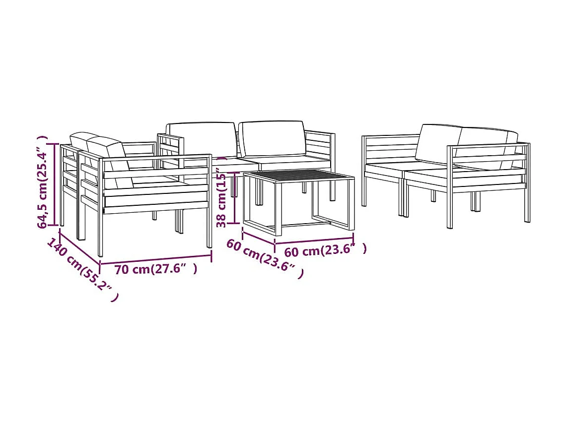 Salon de jardin 7 pcs avec coussins Aluminium Anthracite