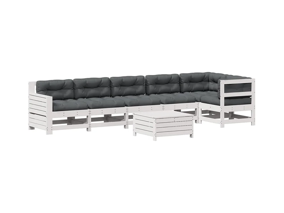 Salon de jardin 7 pcs avec coussins blanc bois de pin massif