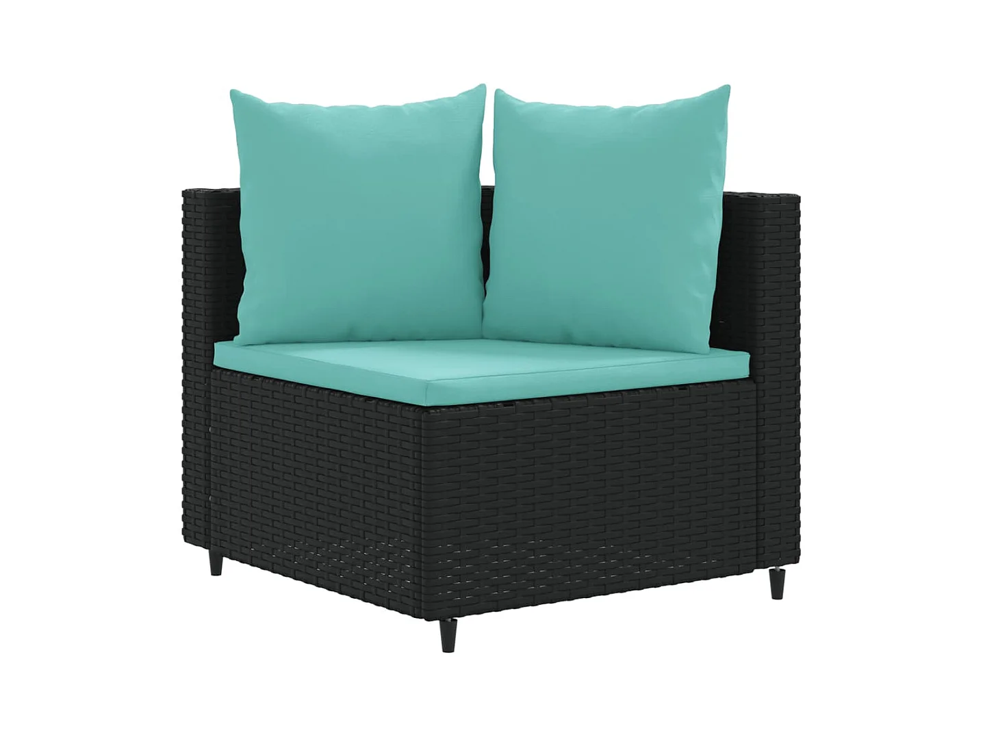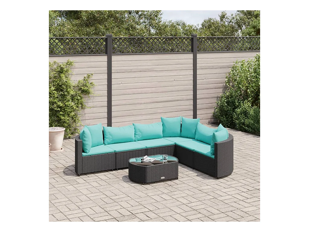 Salon de jardin 6 pcs avec coussins noir résine tressée