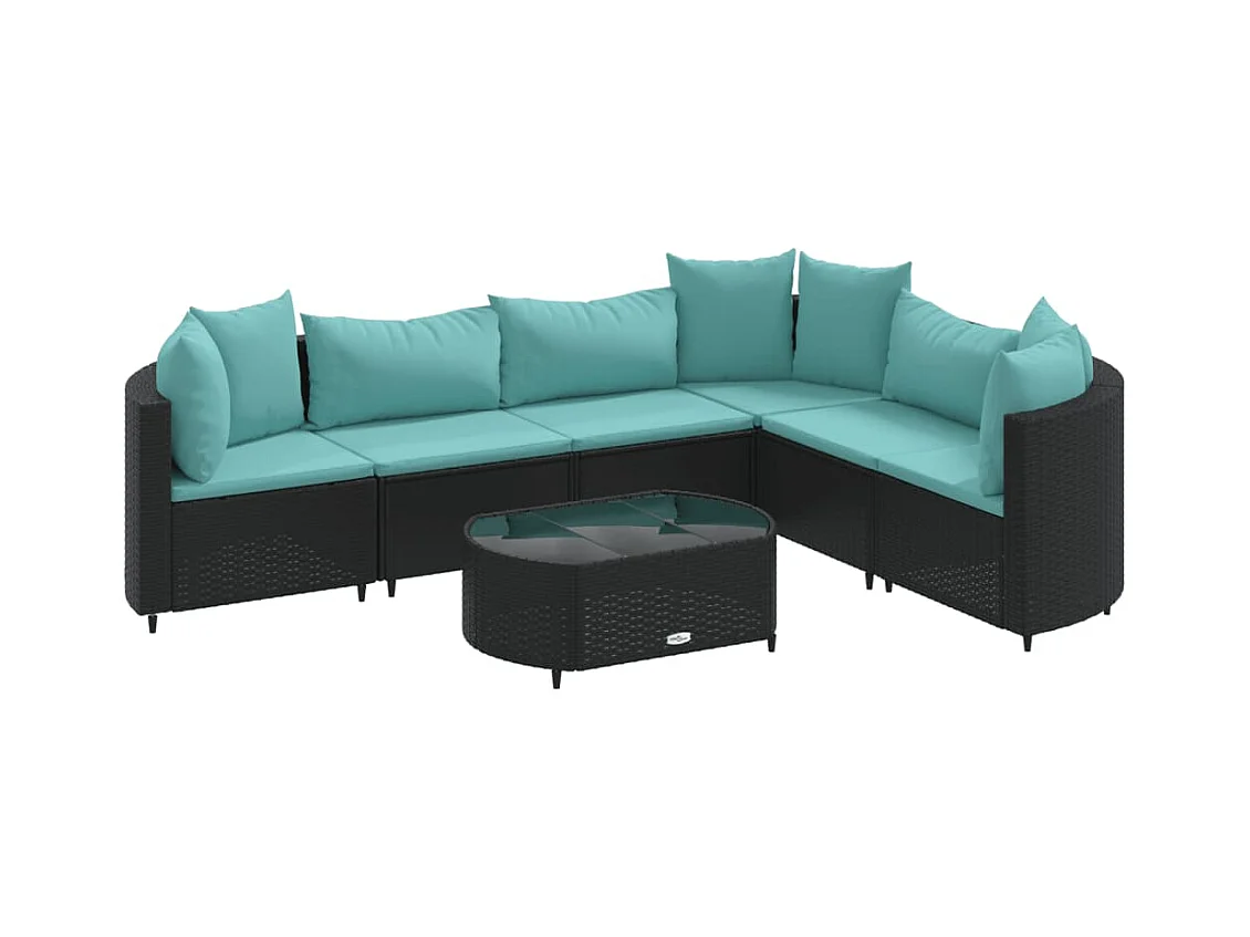 Salon de jardin 7 pcs avec coussins noir résine tressée